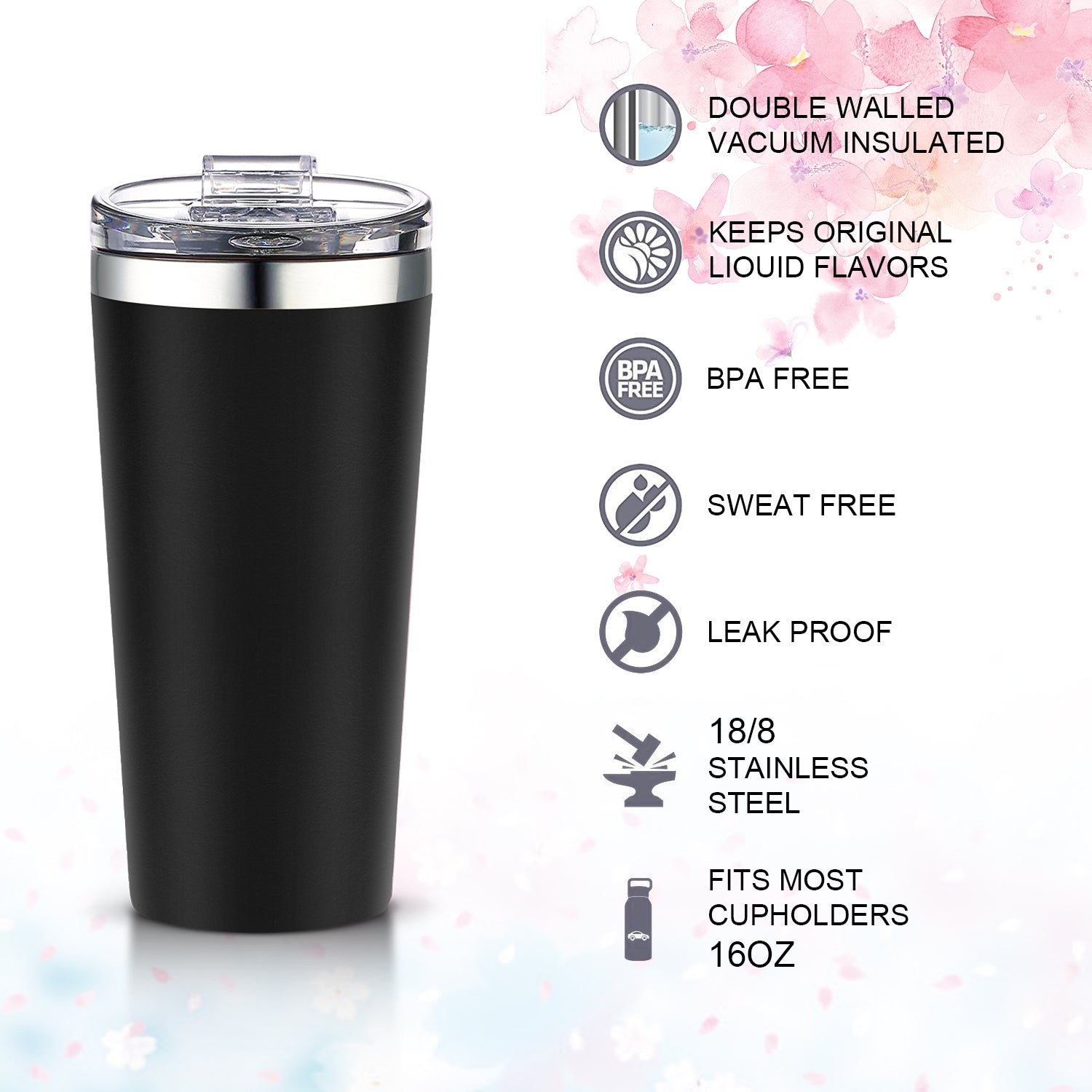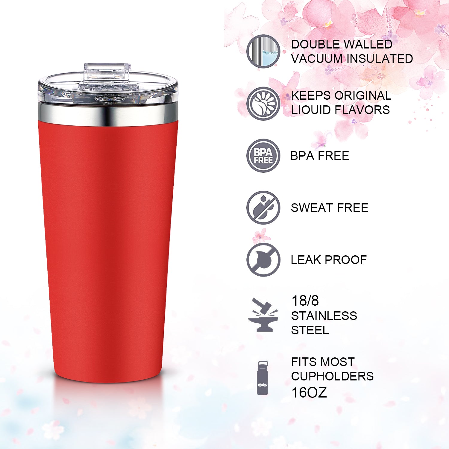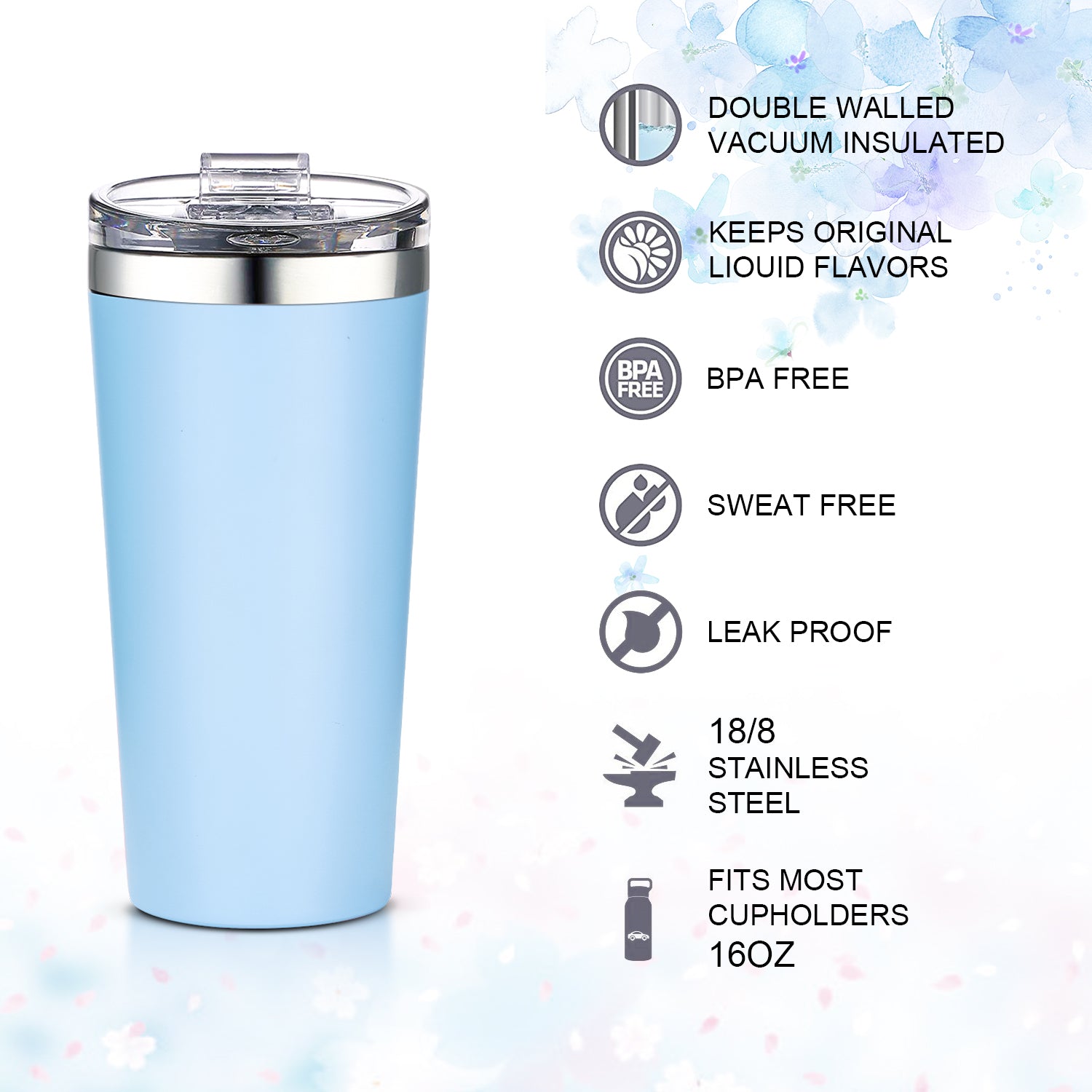 - Double wall vacuum insulated 18/8 stainless steel tumbler,With Crystal clear lid(Tritan),Spill proof