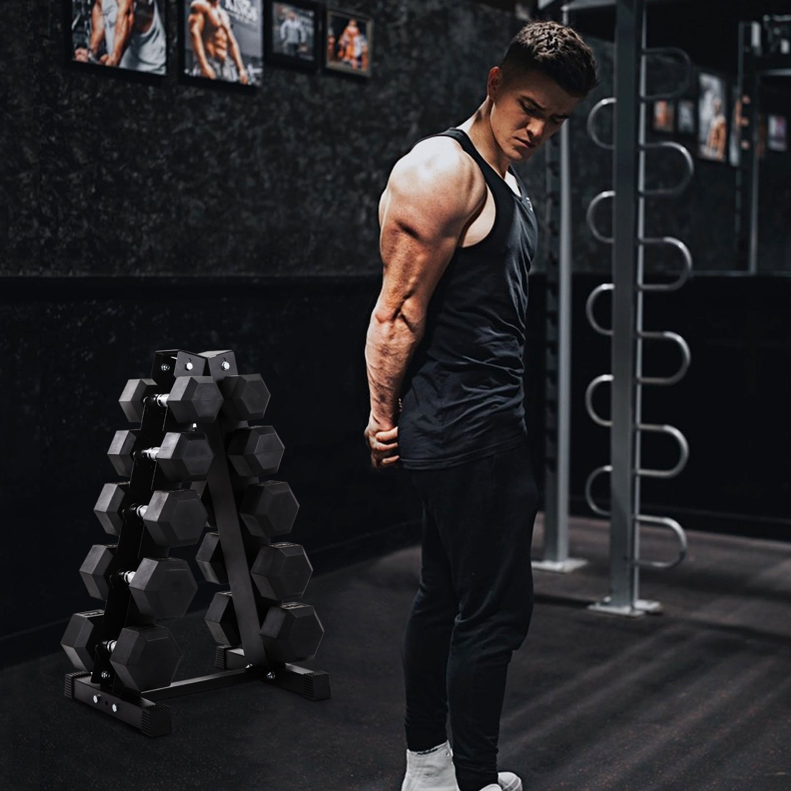 - ¡¾SPACE SAVING¡¿ A- frame design, Product dimensions are 21.5" L x 16.25" W x 34.5" H. Rack weighs 20.2 lbs, easy to take and storage of dumbbells, suitable for gym, home and office.