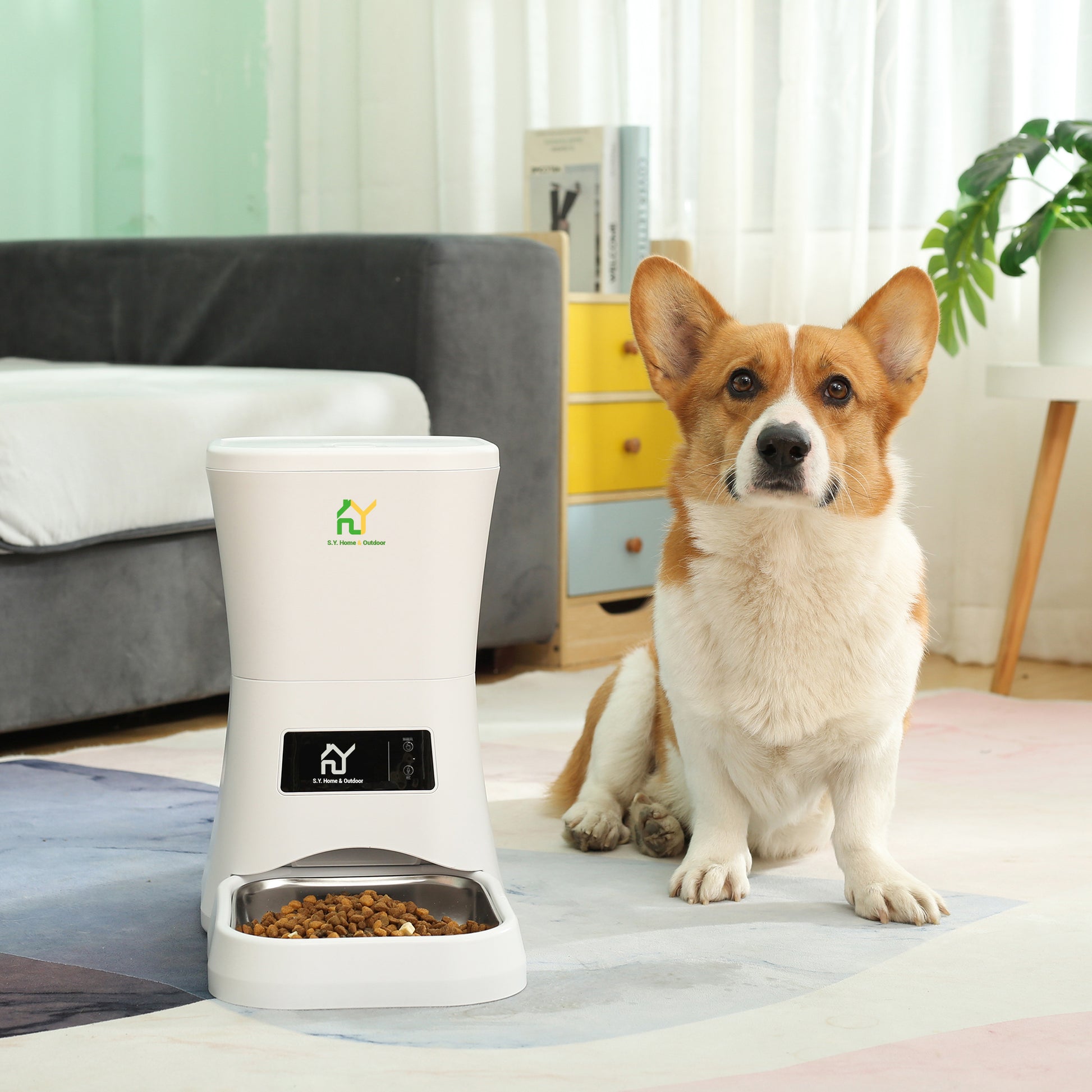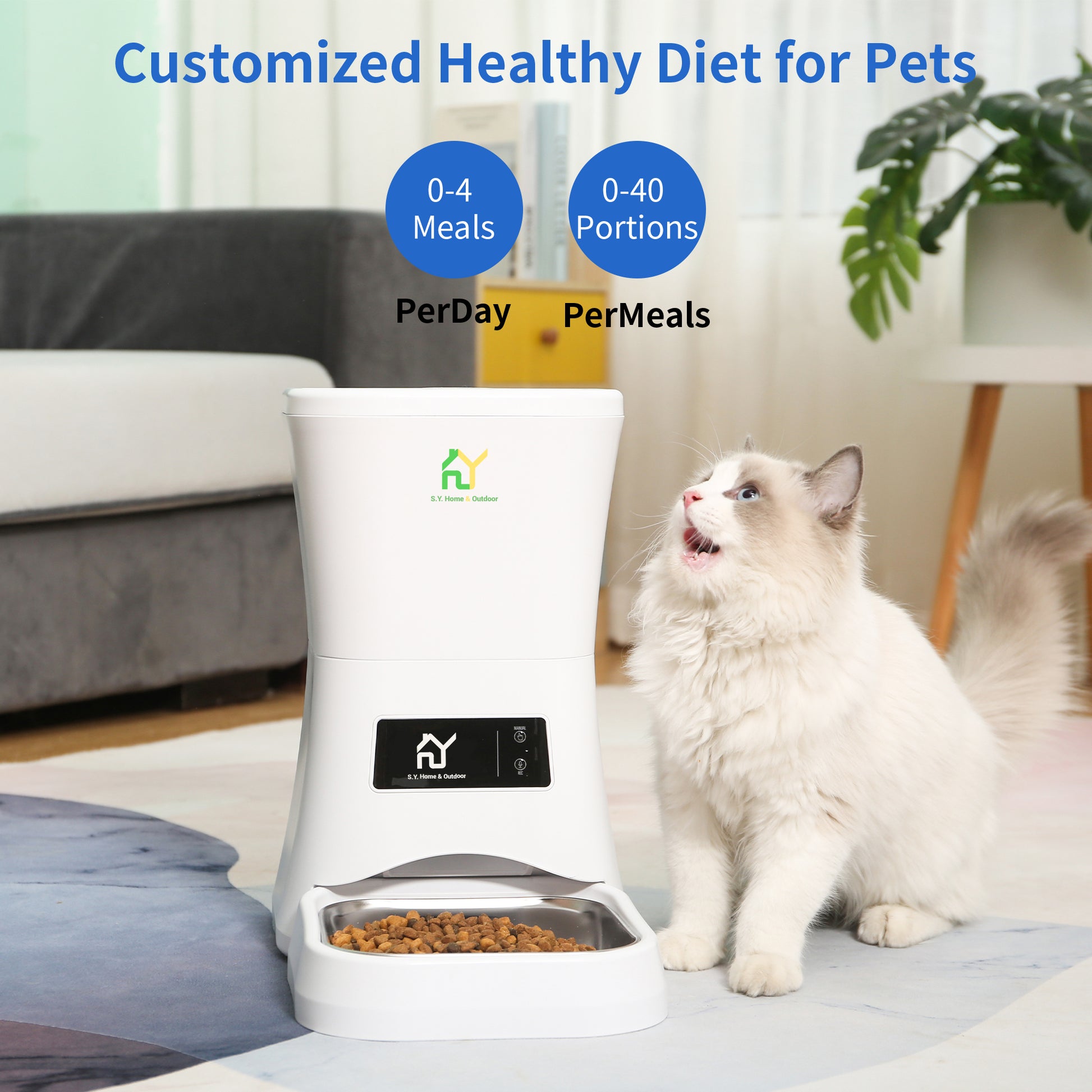 - Suitable Capacity: This 4L / 16.9cup cat feeder automatic consistently provides food for your cat and dog smoothly for a couple of day, assuring you that it' ll stay full and happy when you're out for a short vacation or work long hours as well as come with a desiccant bag to keep food fresh.?