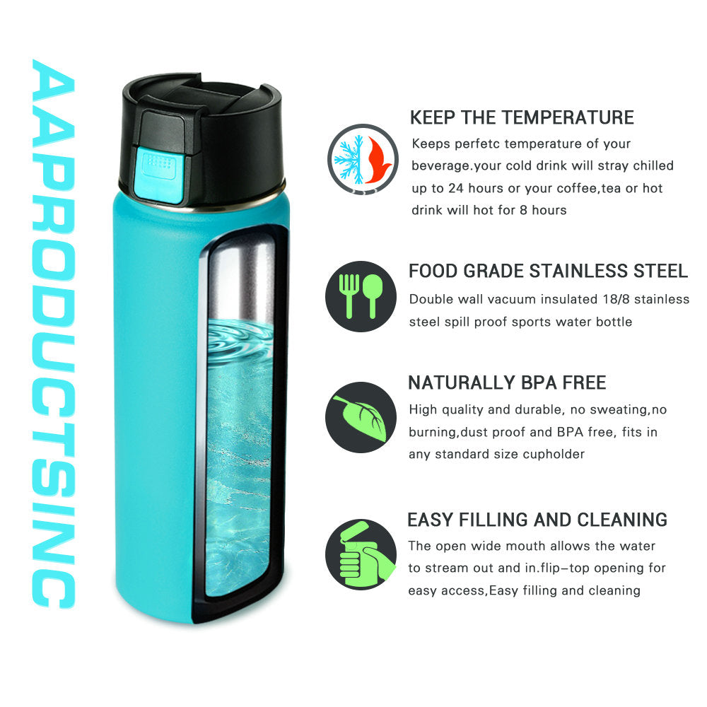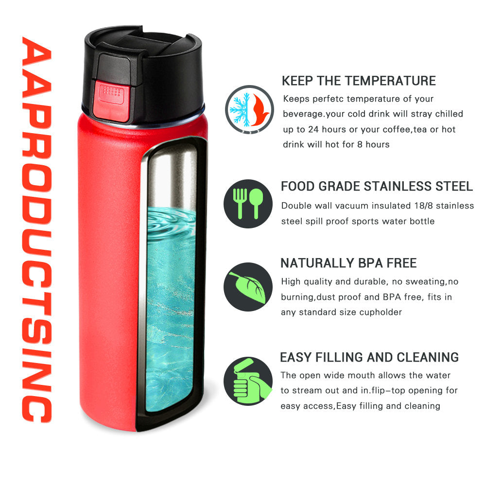 - Double wall vacuum insulated 18/8 stainless steel spill proof sports water bottle