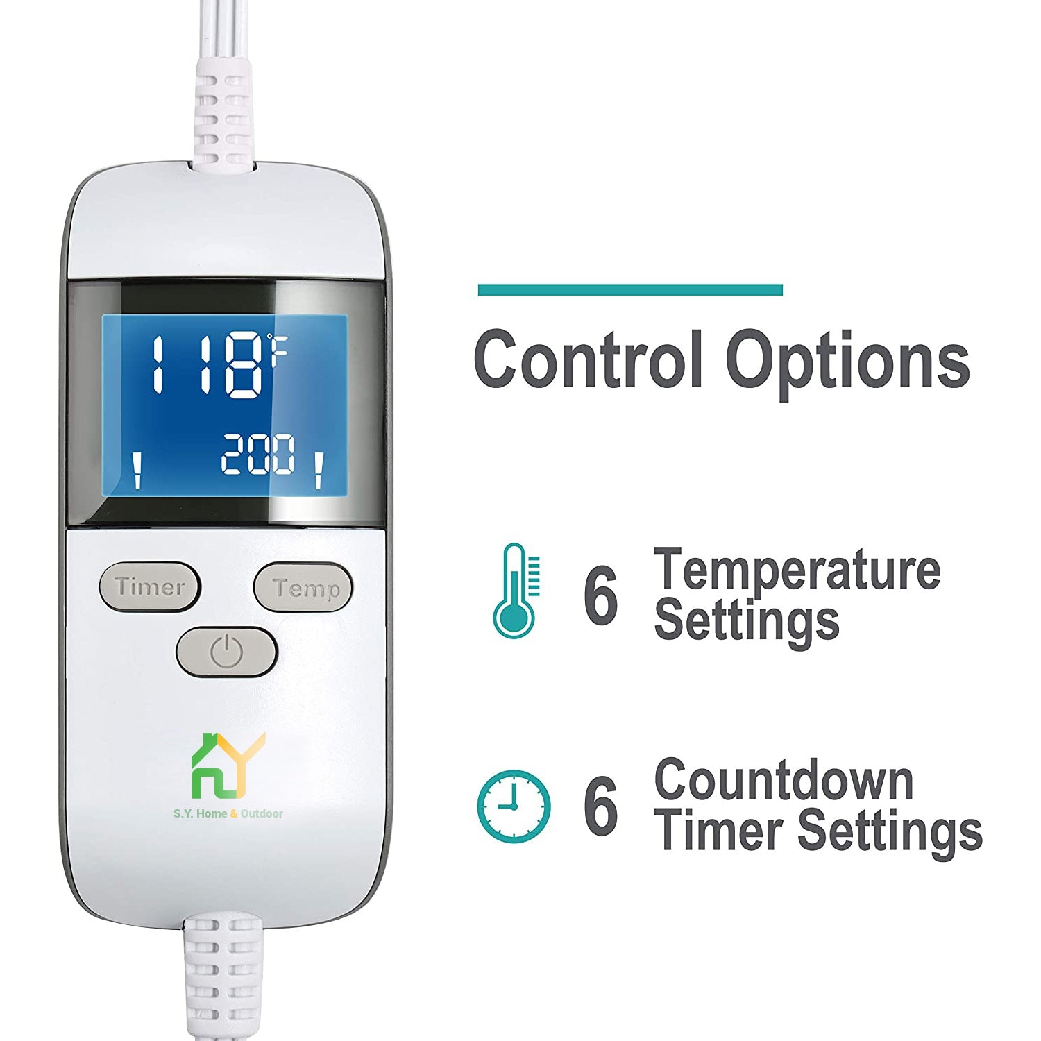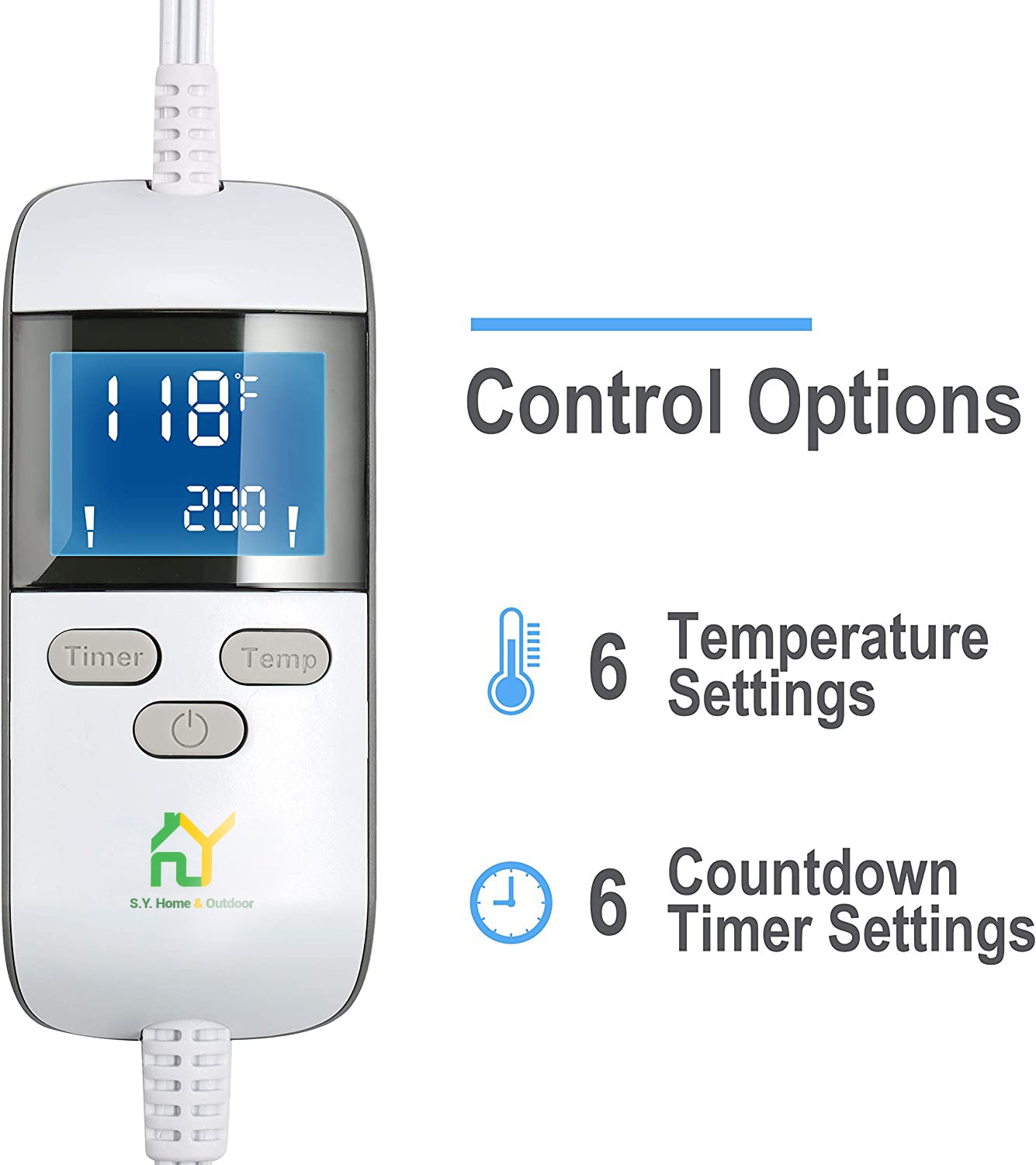 - [6 Heat Level and 6 Timer Settings]: LCD make reading in focus, display variegated .Built-in thermostat provides 6 temperatures(95¡ãF, 104¡ãF, 113¡ãF, 122¡ãF, 131¡ãF, 140¡ãF),an auto-off function with 6 countdown timer settings()for additional safety, displayed on LCD, make you reading in focus and thoughtful user experience.