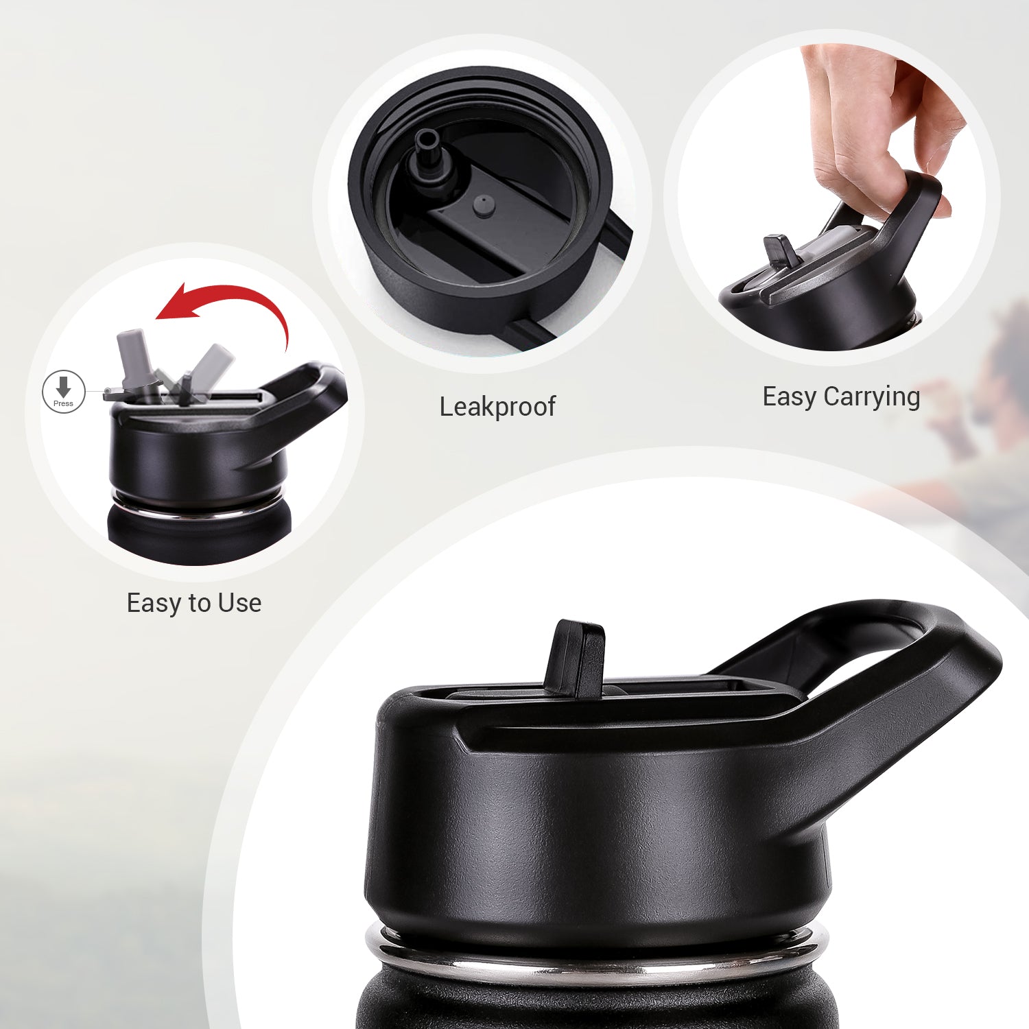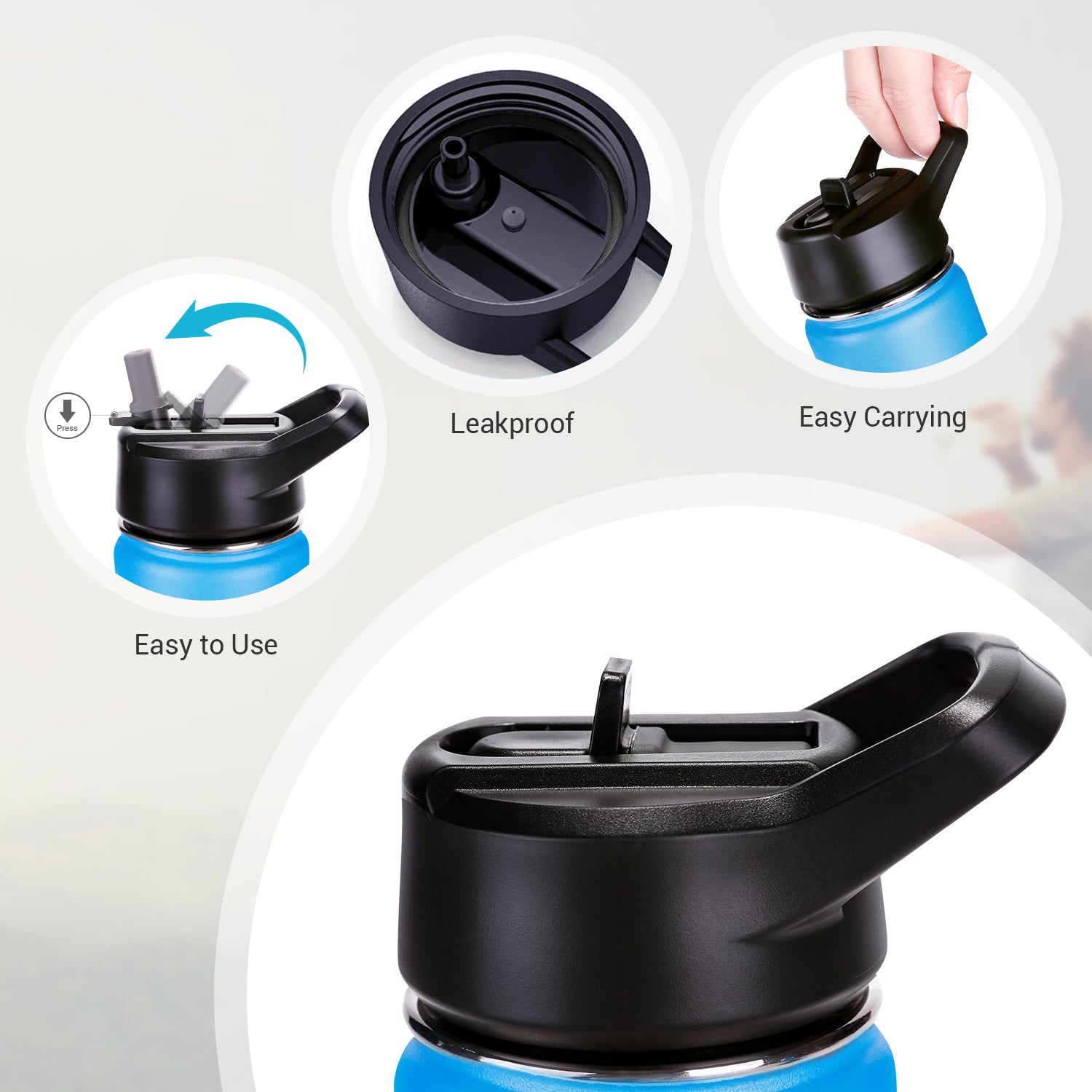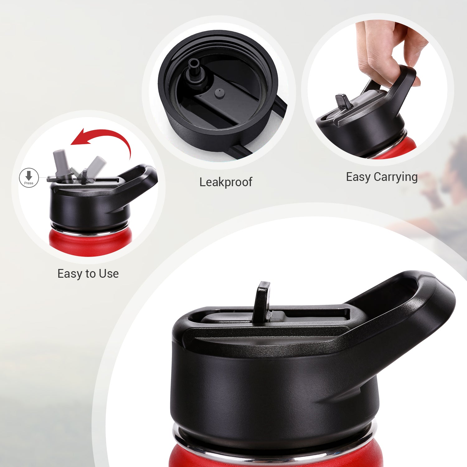 - Non-Sweat Design: Our Sealed sports bottle with leak-proof Straw Lid, It features a sturdy carry handle for convenient portability. The Vacuum water bottle doesn't transfer coffee, beer, wine or juice flavors.