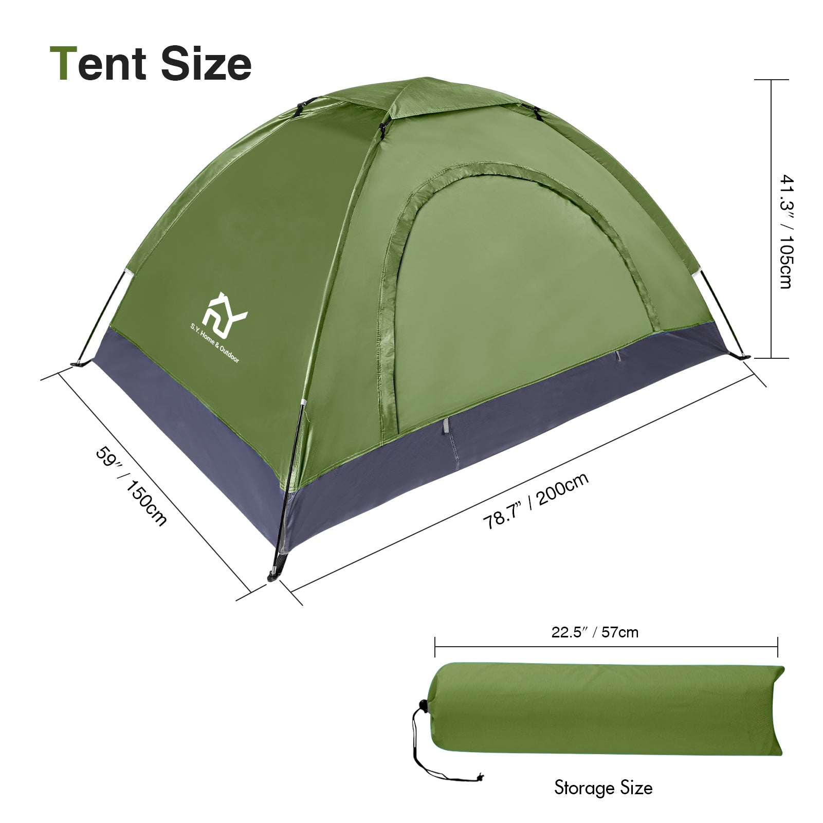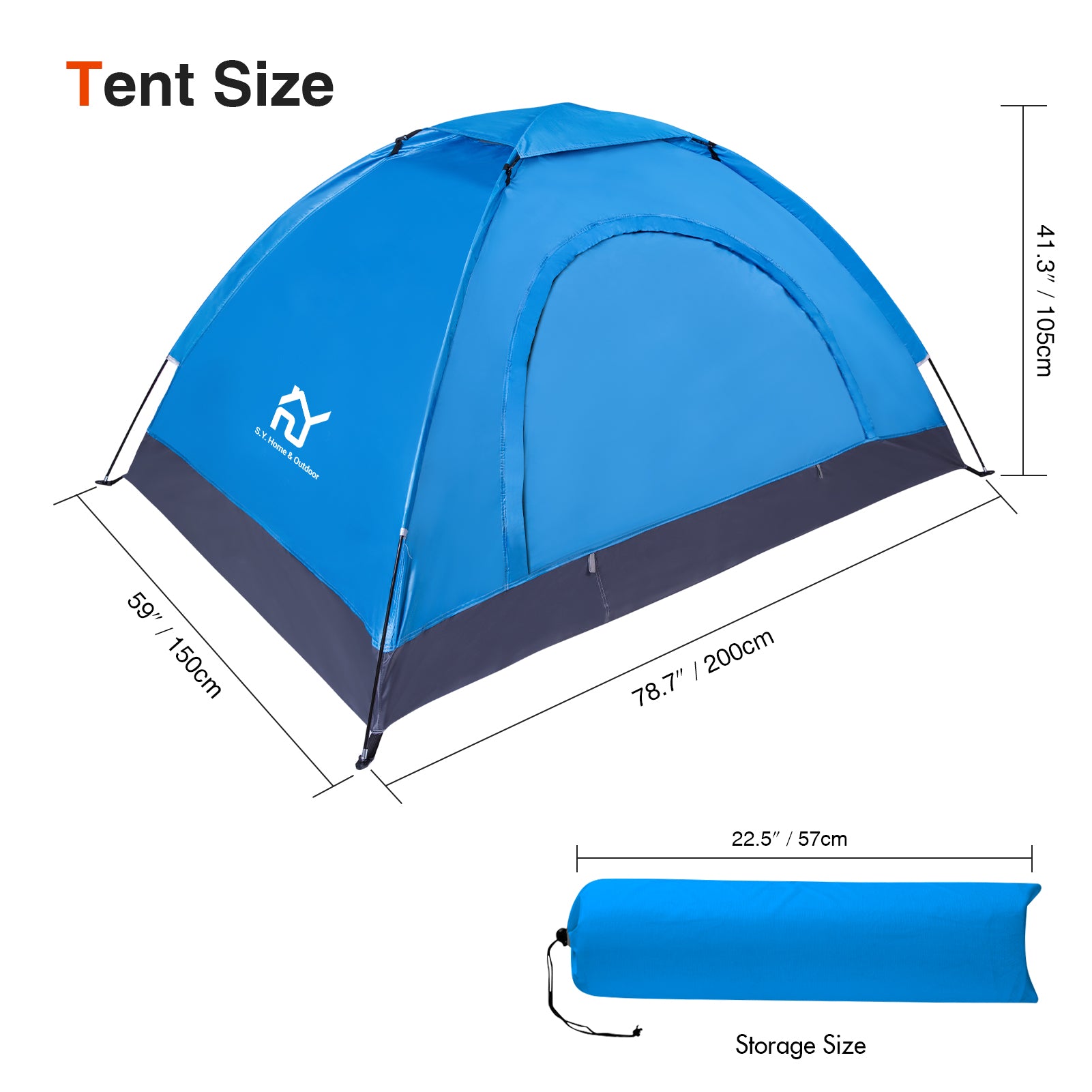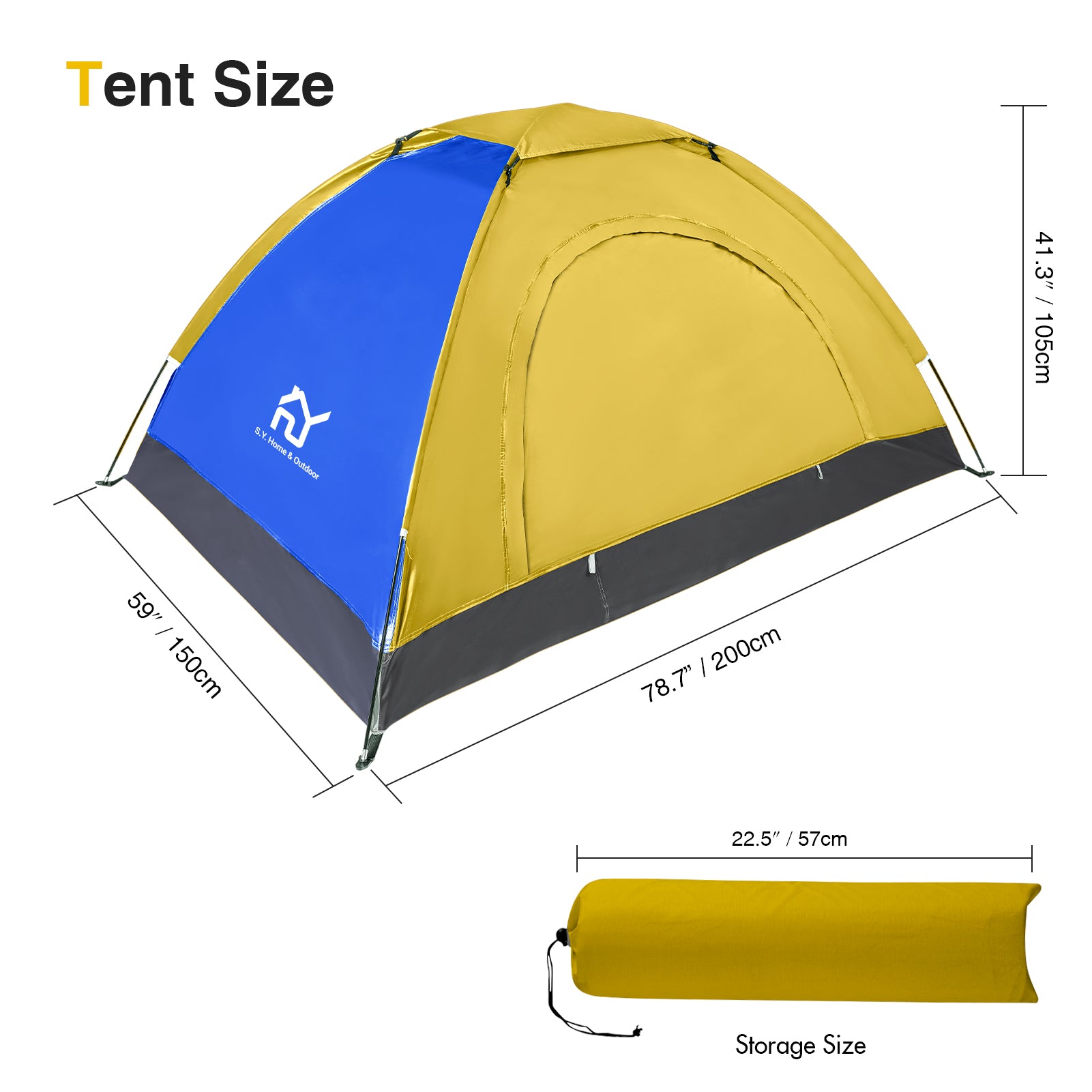 - EASY CARRY - The 2 person tent's unfolding size: 78.7''x 59''x 41.3'', storage size: 22.5". This lightweight tent is spacious for 2 adults. It's ideal for Camping,Hiking,Fishing,beach or backyard activities.Family or Couple outdoor adventure.