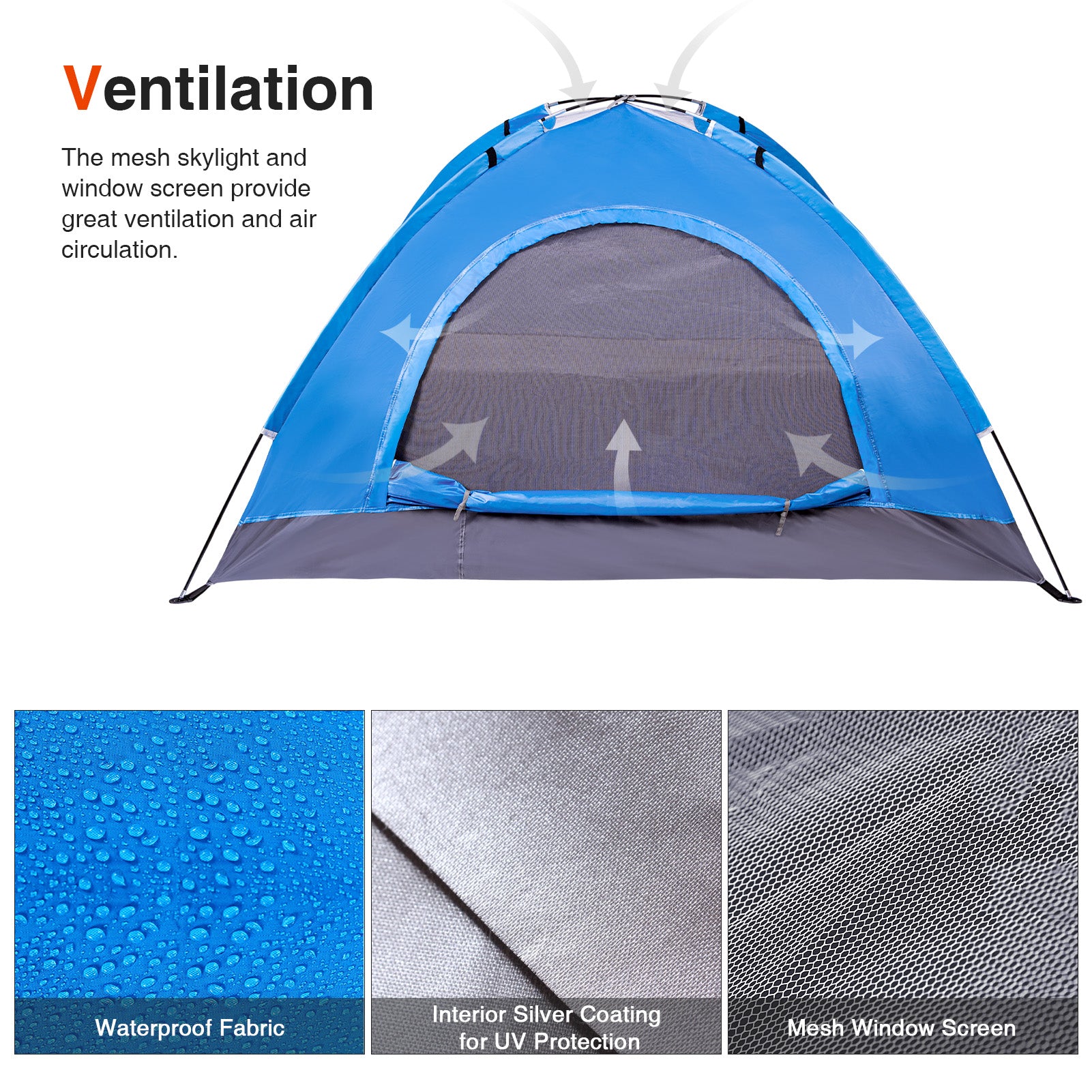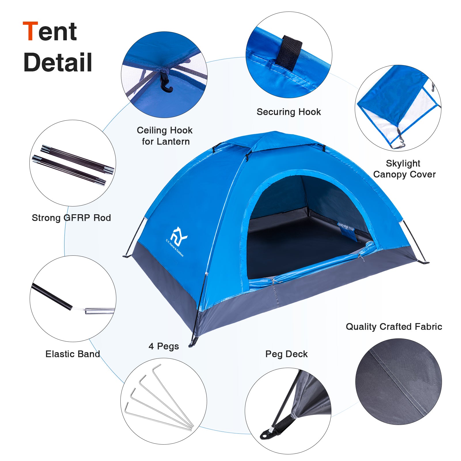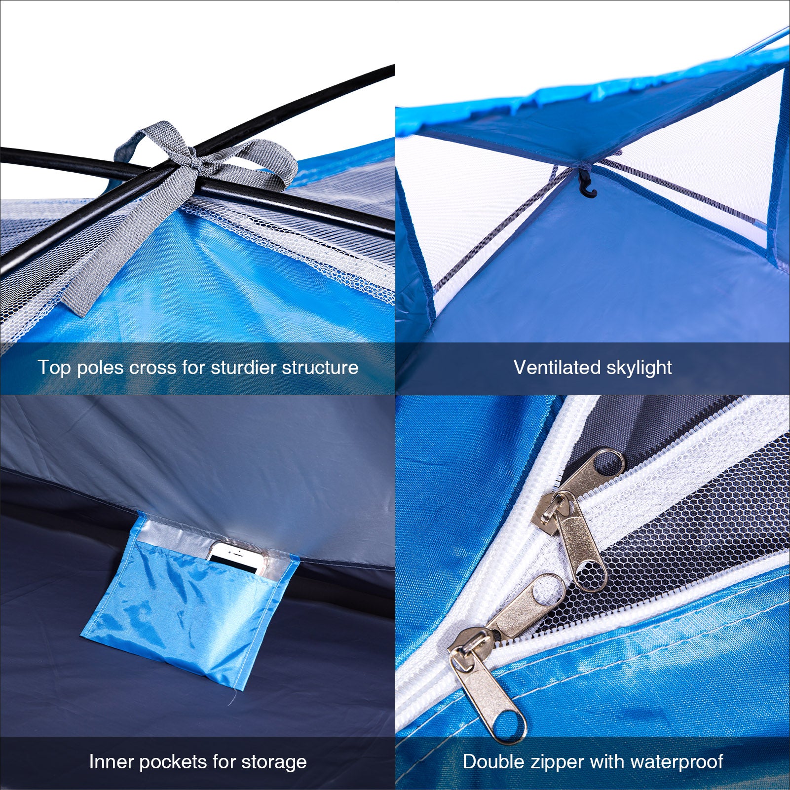 - EASY CARRY - The 2 person tent's unfolding size: 78.7''x 59''x 41.3'', storage size: 22.5". This lightweight tent is spacious for 2 adults. It's ideal for Camping,Hiking,Fishing,beach or backyard activities.Family or Couple outdoor adventure.