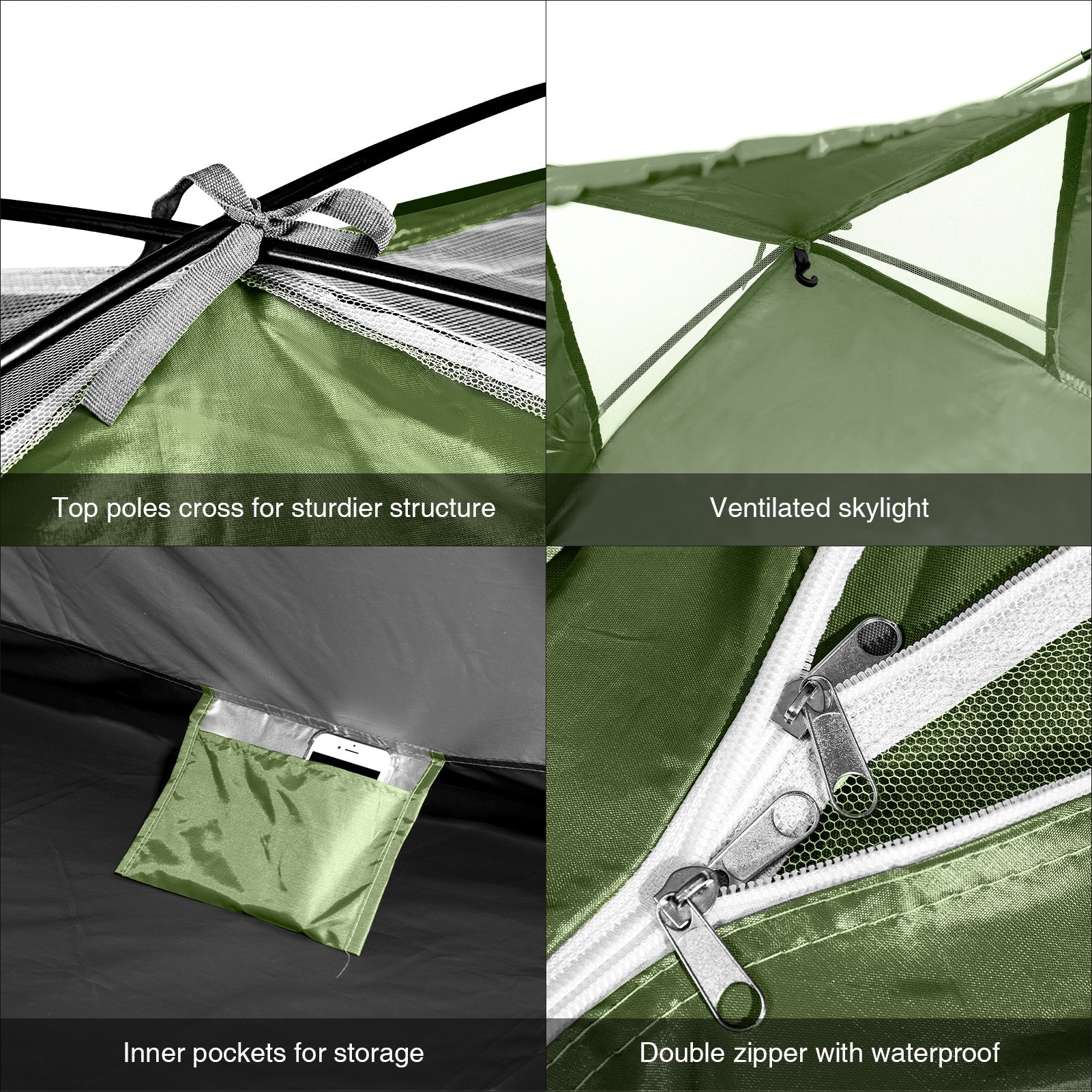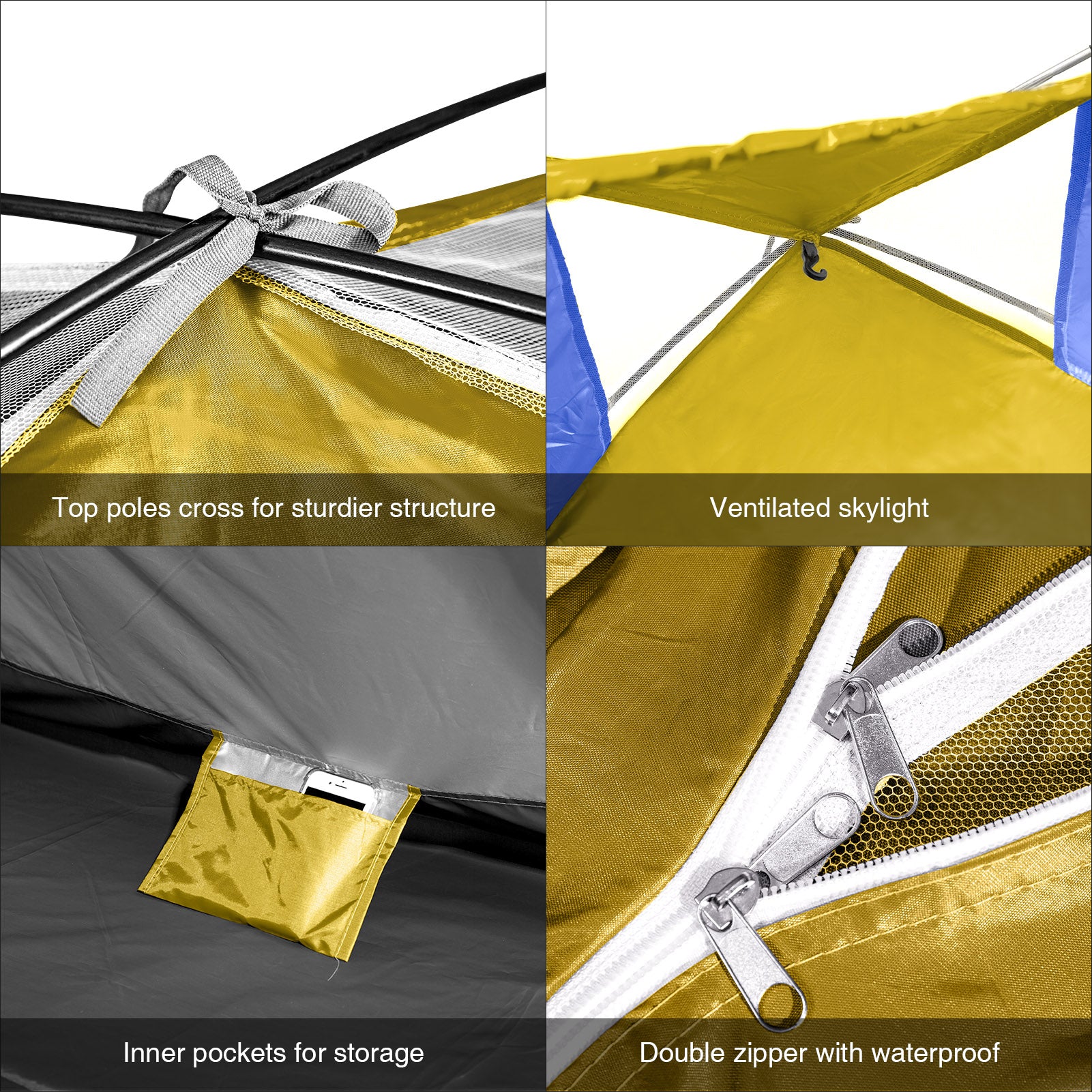 - WELL-DESIGNED - Inner layer of cabin tent's door made by High-density gauze, The yarn net make sure bugs-free while enjoy the fresh air, keep your sleeping safe and sound. Also you can zip up the inner cloth if you want a little privacy.
