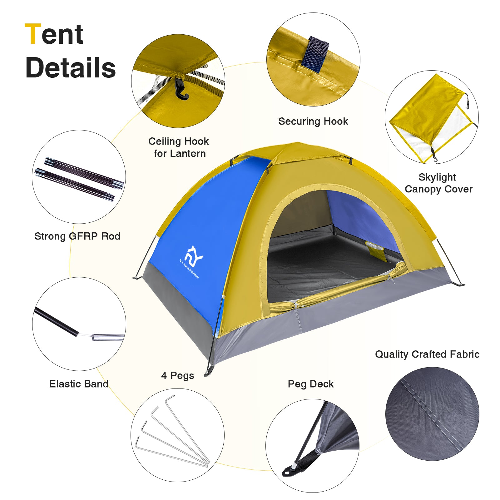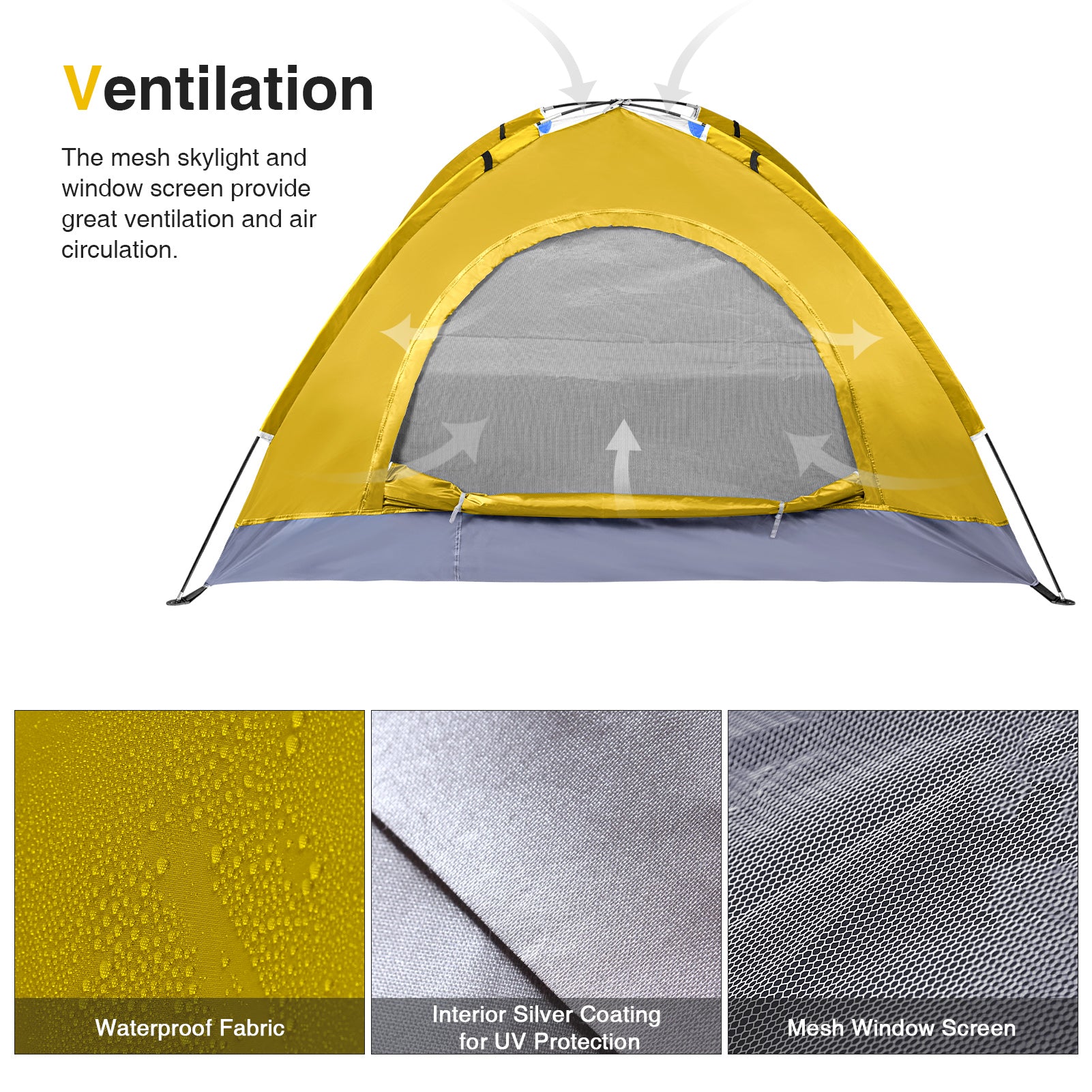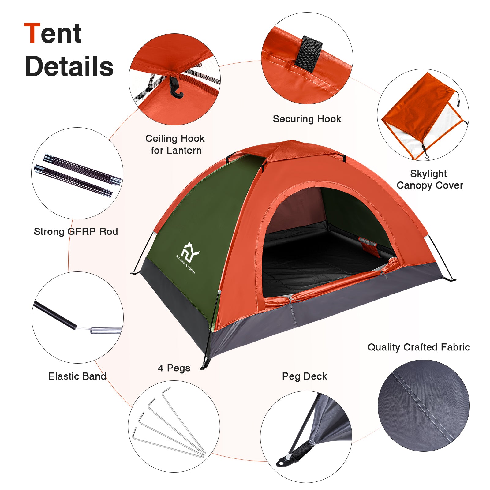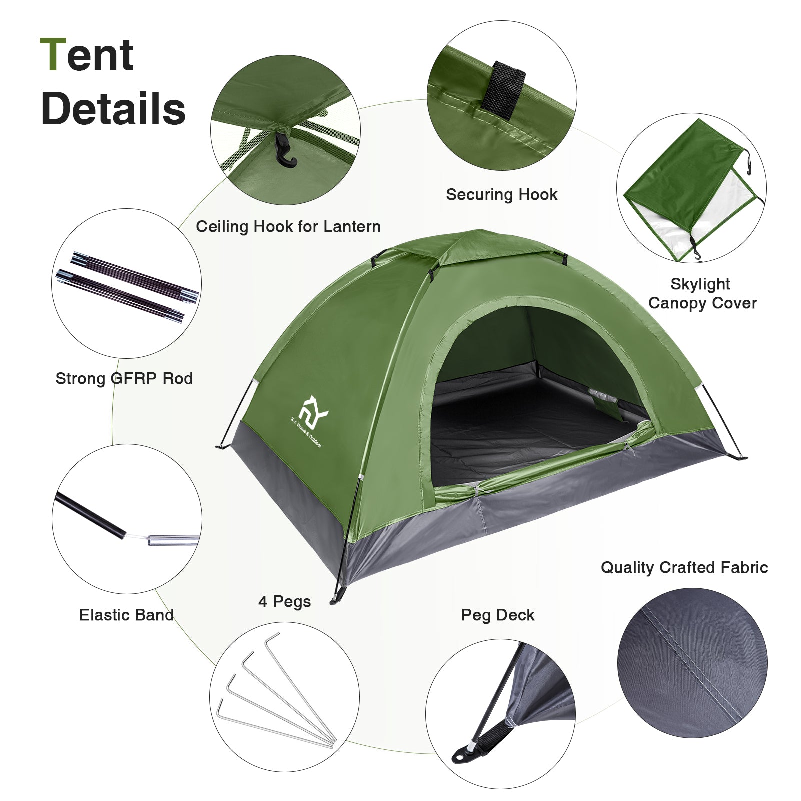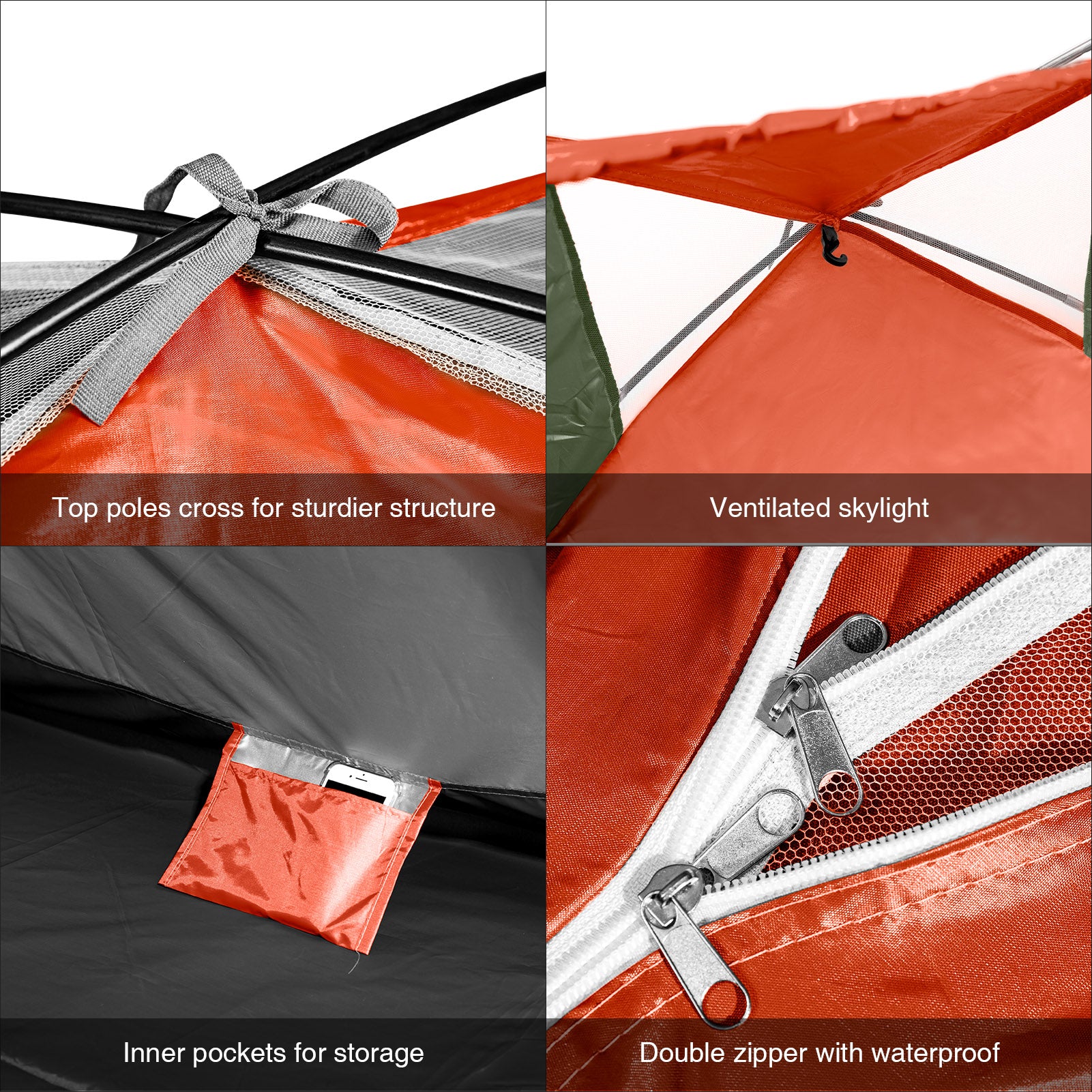 - EASY SET UP - Aluminum pole structure makes the outdoor tent easy to set up and pack down into your backpack.You can assemble the tent in about a minute and then get started on your adventure.