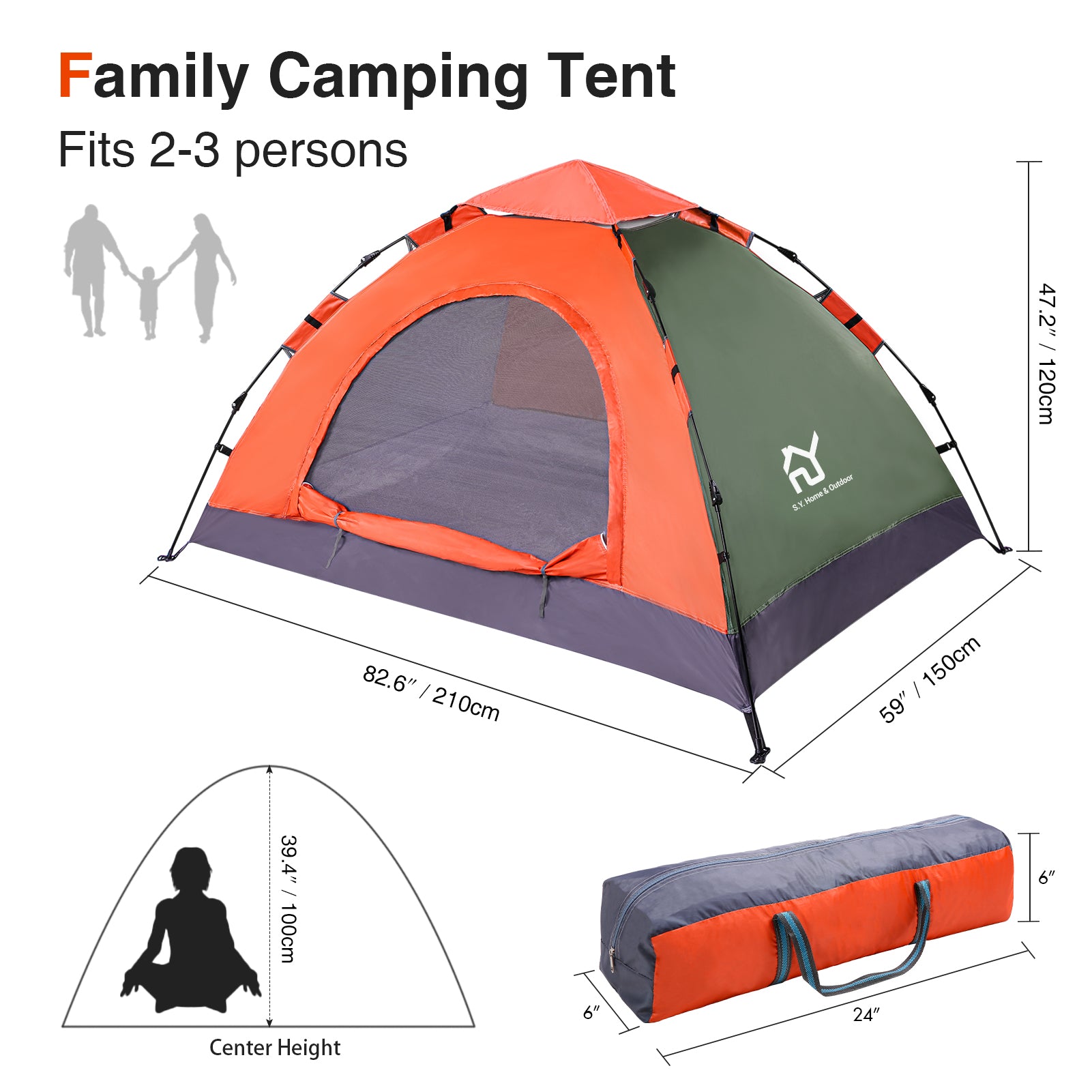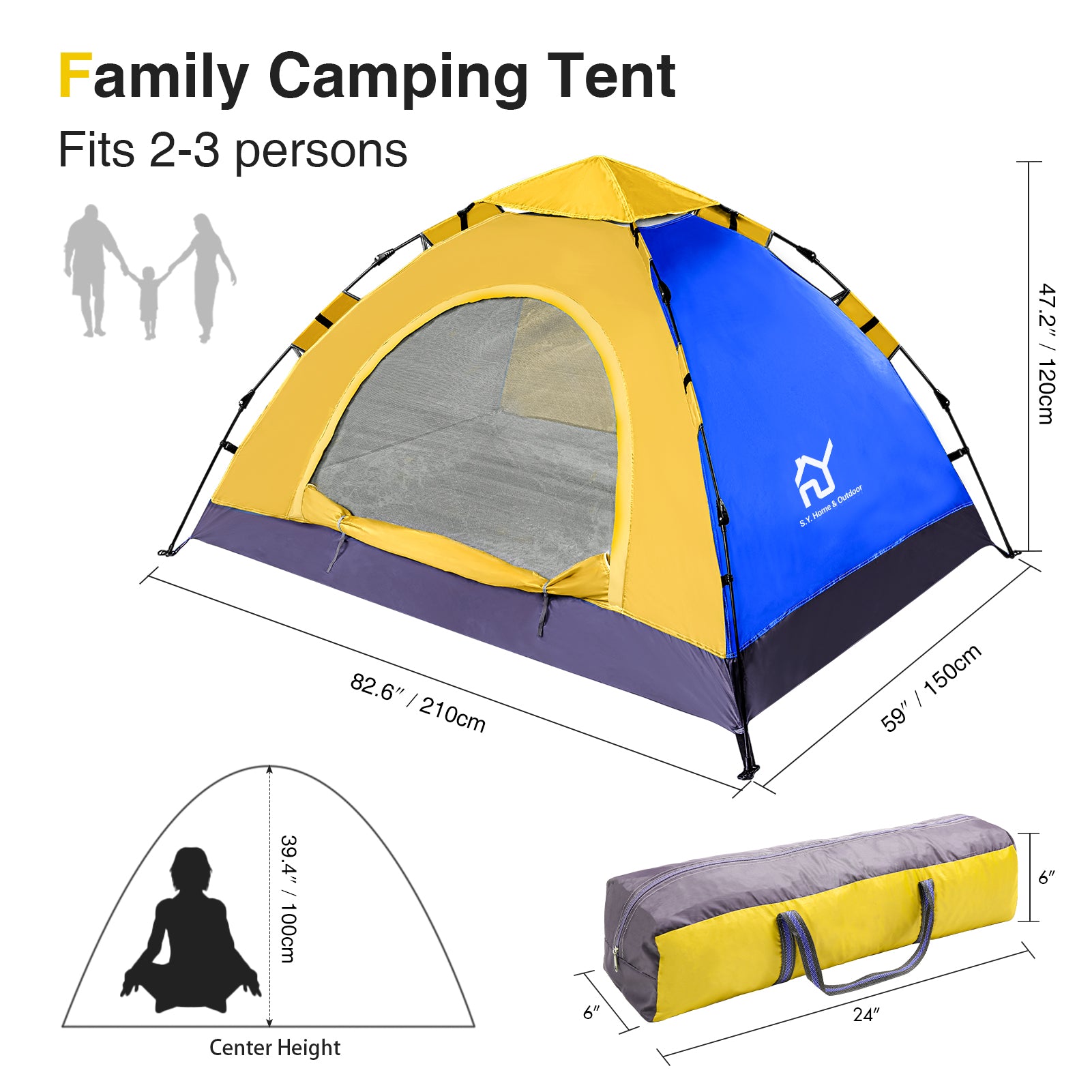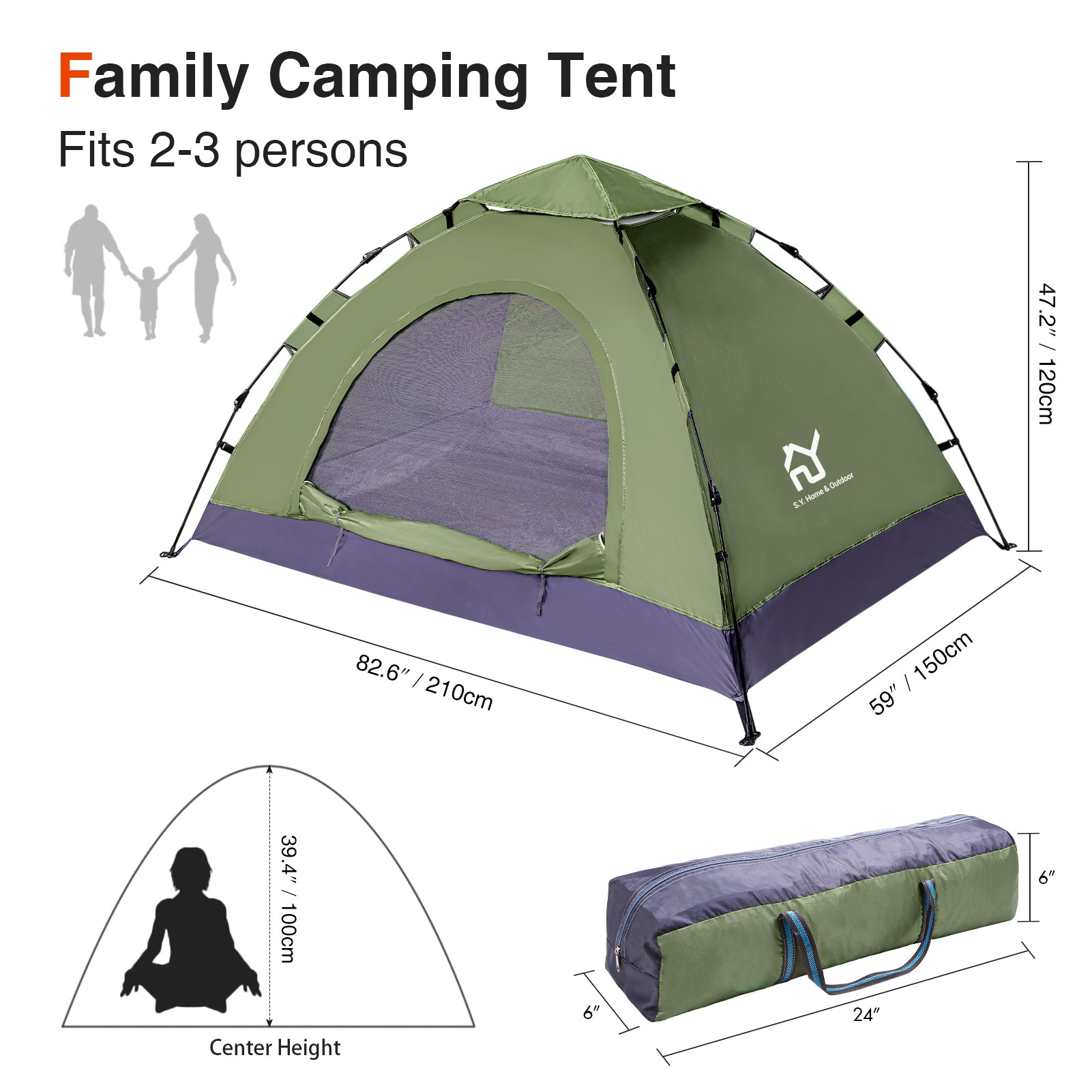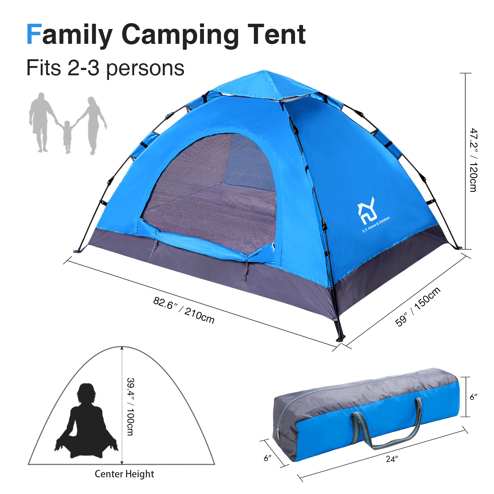 - LARGE ROOM,EASY STORAGE - S.Y. outdoor lightweight large tent is spacious for 2 person,and still has space for a child. It's ideal for Camping,Hiking,Fishing,beach or backyard activities.Family or Couple outdoor adventure.