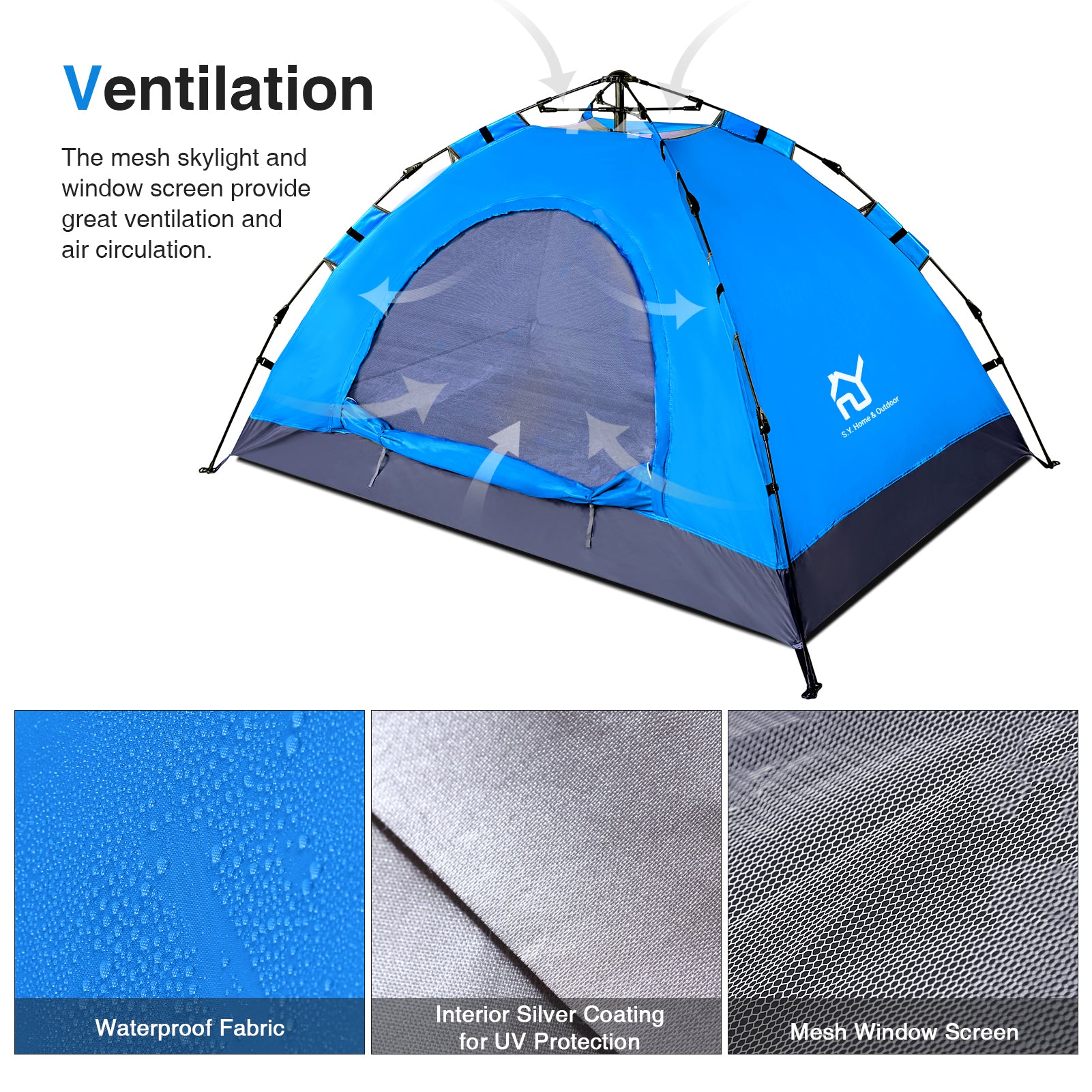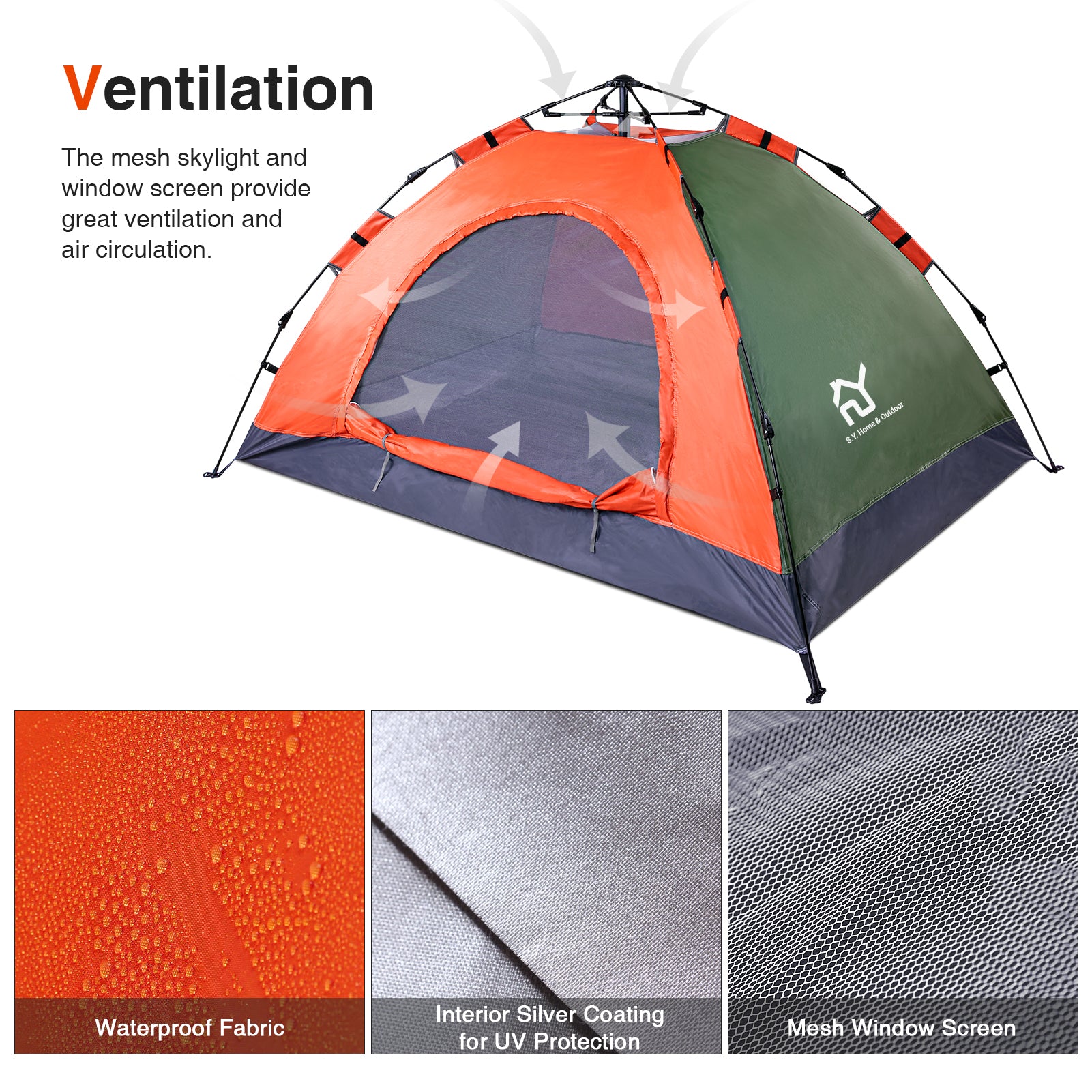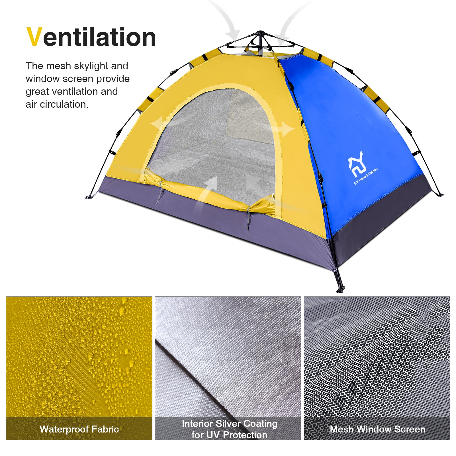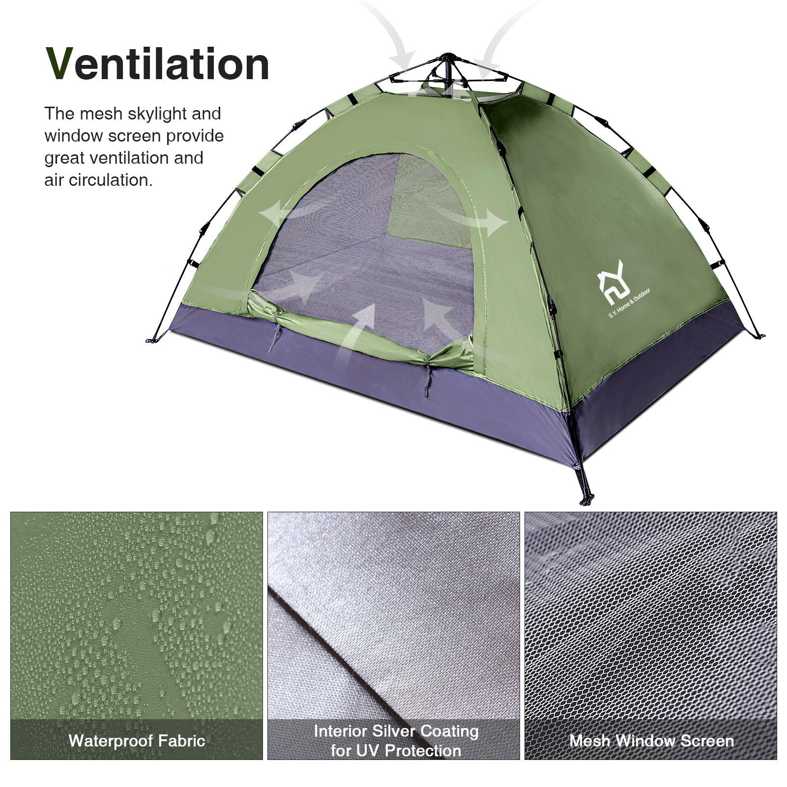 - LARGE ROOM,EASY STORAGE - S.Y. outdoor lightweight large tent is spacious for 2 person,and still has space for a child. It's ideal for Camping,Hiking,Fishing,beach or backyard activities.Family or Couple outdoor adventure.