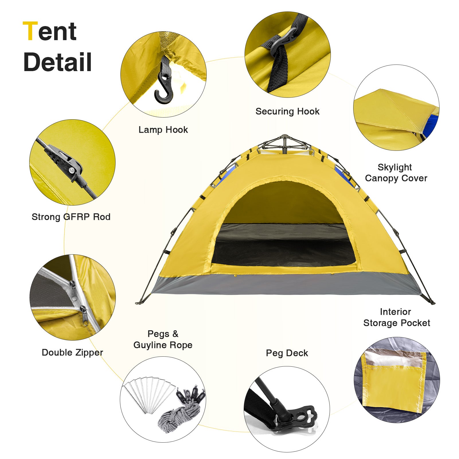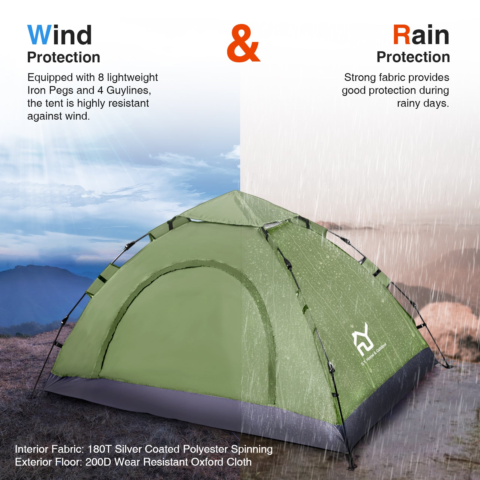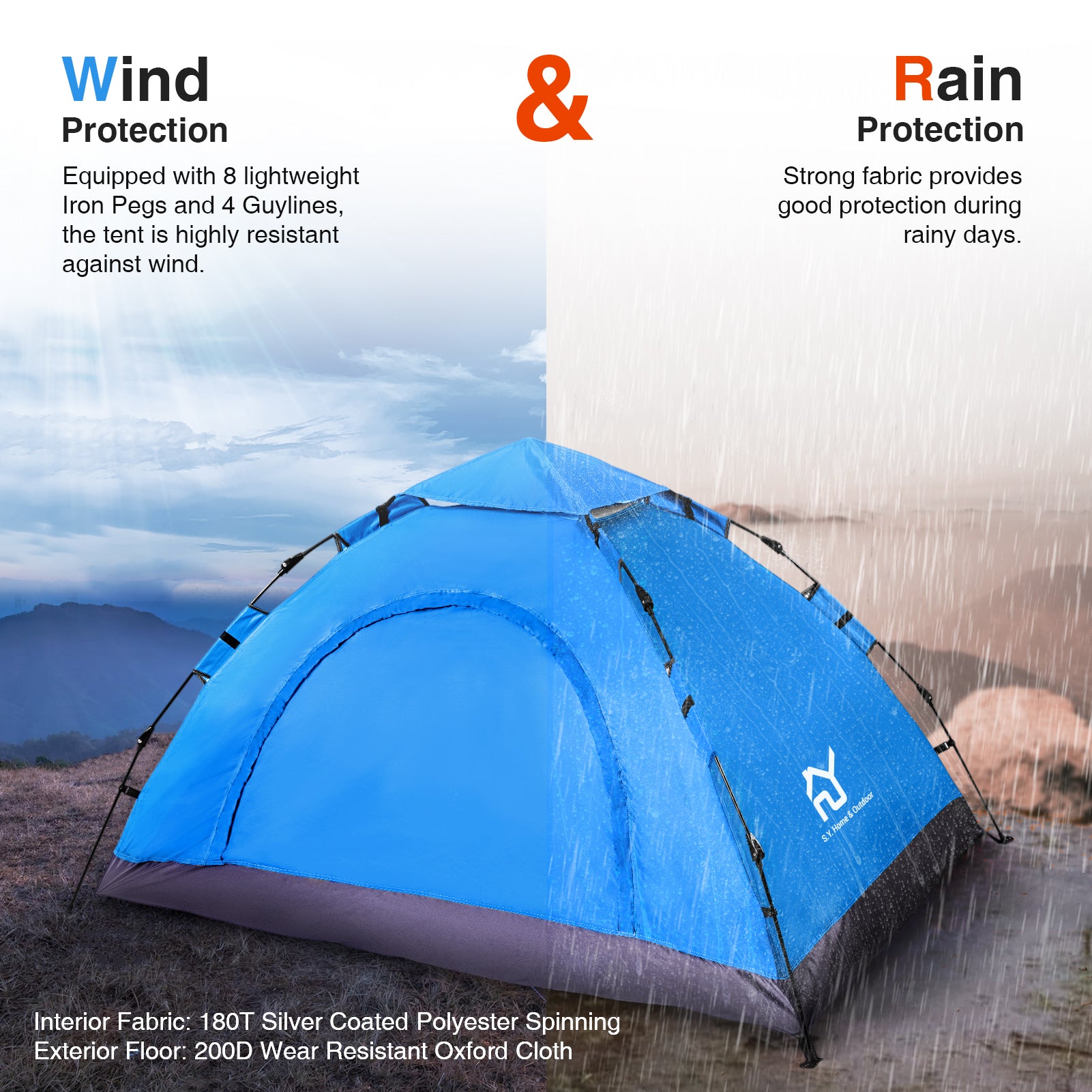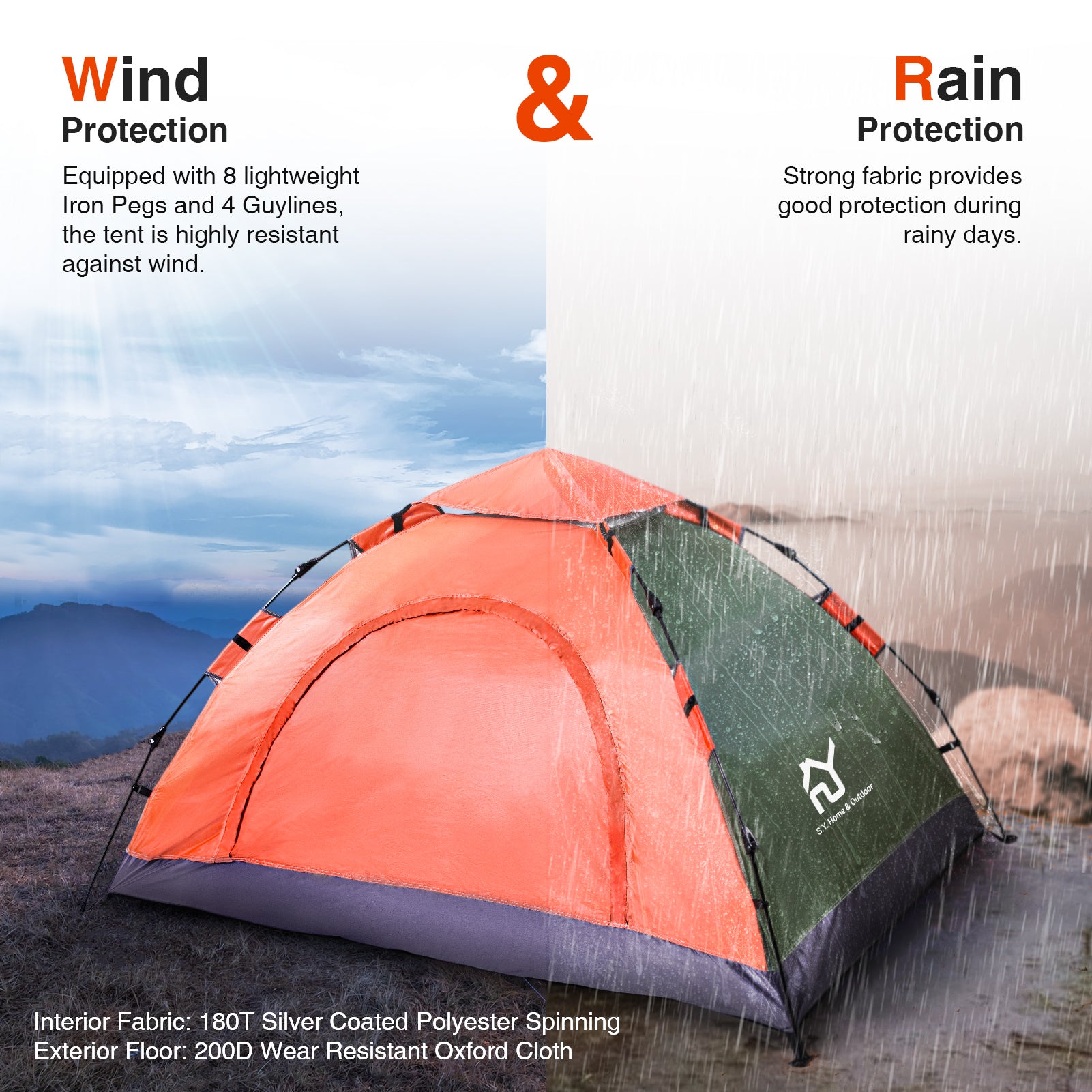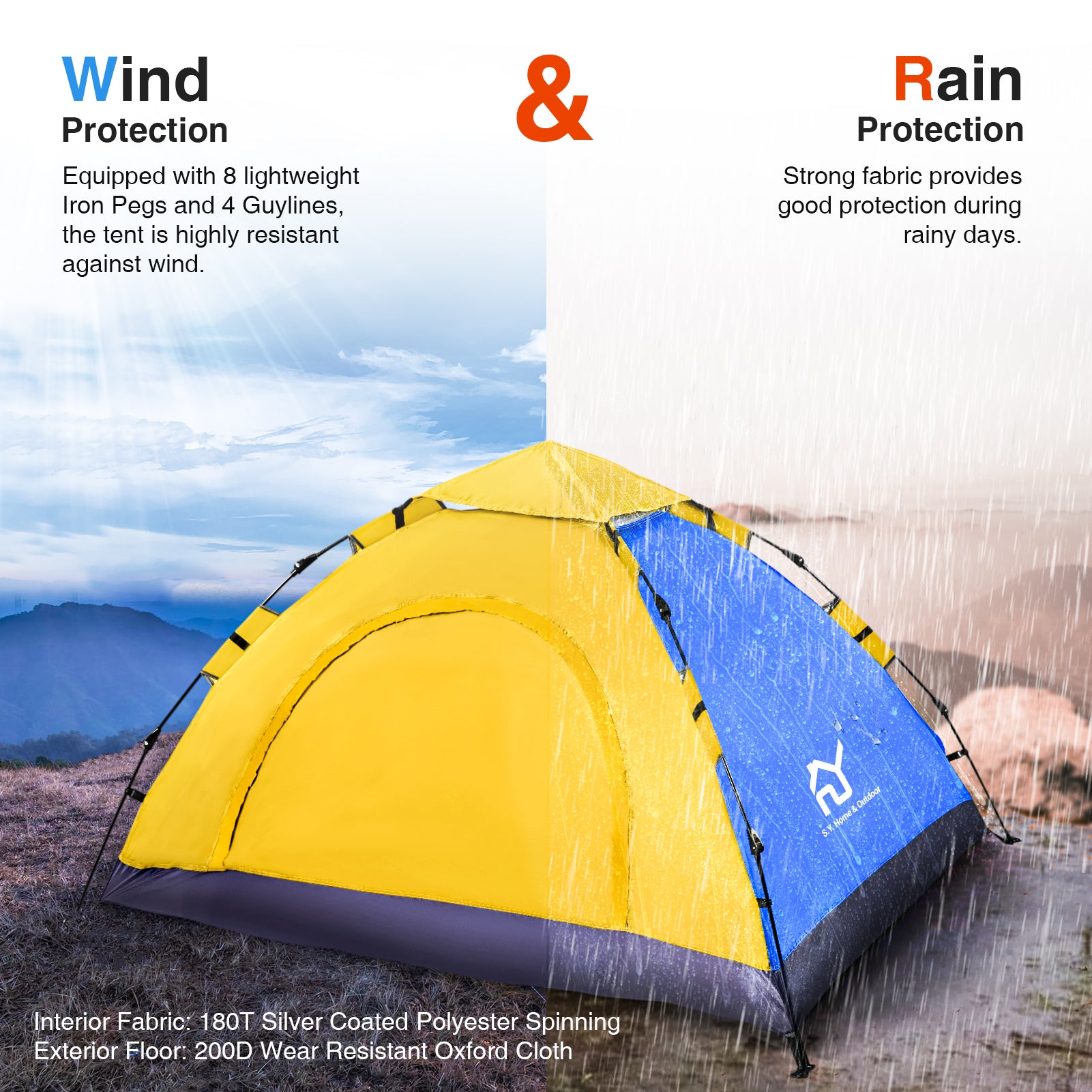 - PREMIUM QUALITY - S.Y. Outdoor tent has durable FRP-fiber construction. Made out of waterproof, UVA/UVB-proof and abrasion resistant material, Equipped with 8 lightweight Iron Pegs and 4 Guy Ropes, More Secure.