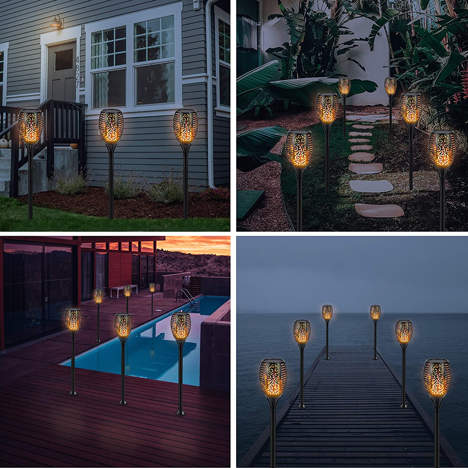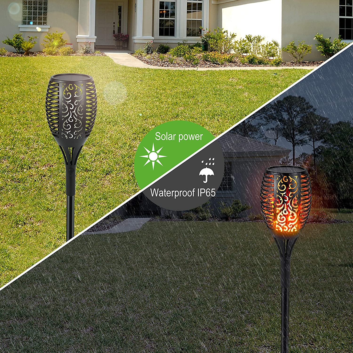 - ?Gorgeous Dancing Flame Design: S.Y. solar torch light is a safe alternative to the real ¡°flames¡± with 96 LEDs inside, which cast a safe, soft and mood-enhancing glow to decorate surrounding for the garden, party, holiday etc.