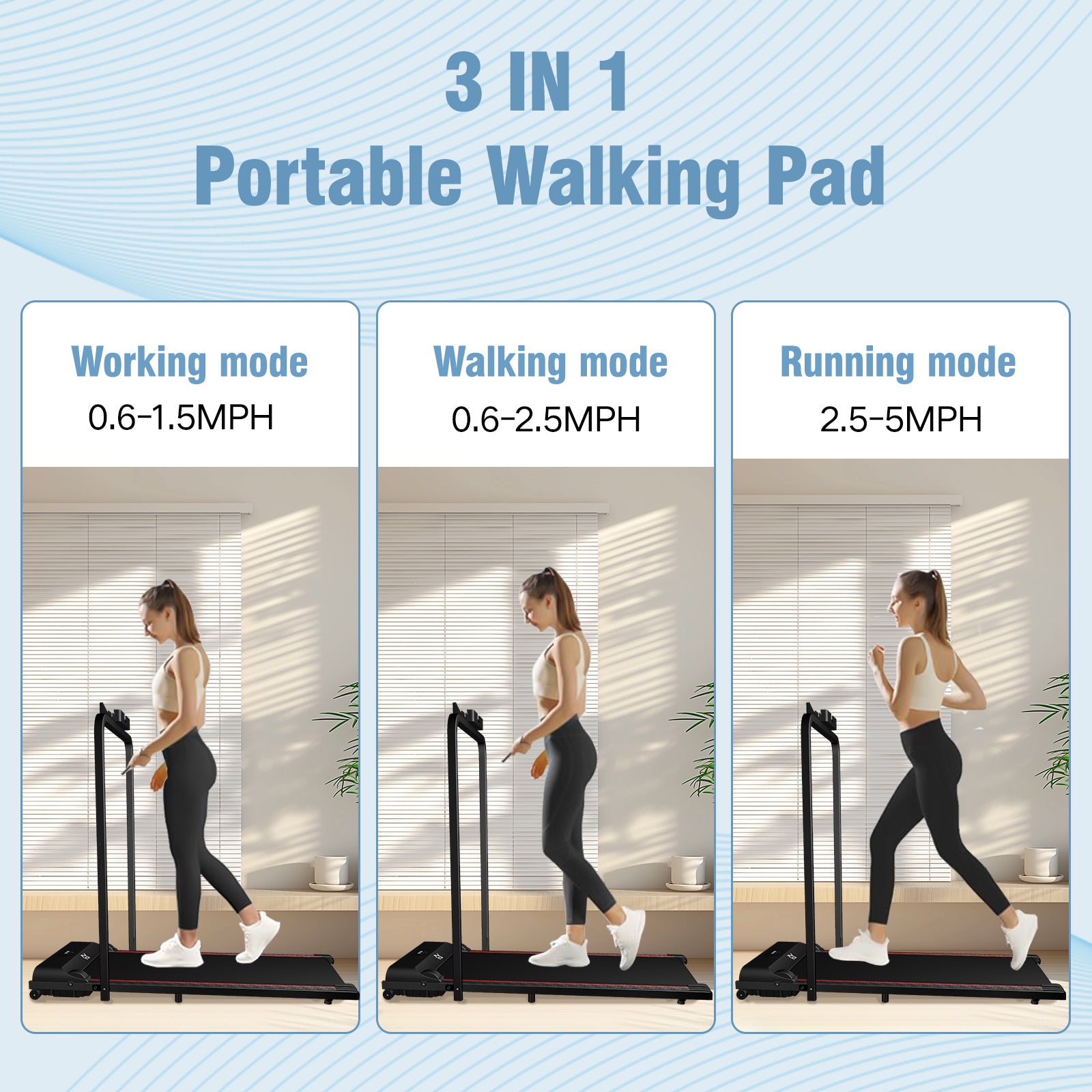 3 IN 1 WALKING PAD IDEAL CHOICE】Our walking treadmill offers a speed range from 0.6 to 5mph. 0.6-1.5mph working mode,0.6-2.5mph walking mode,2.5-5mph running mode, catering to your fitness needs. This under desk treadmill is suitable for personal use and family enjoyment,including elderly users.