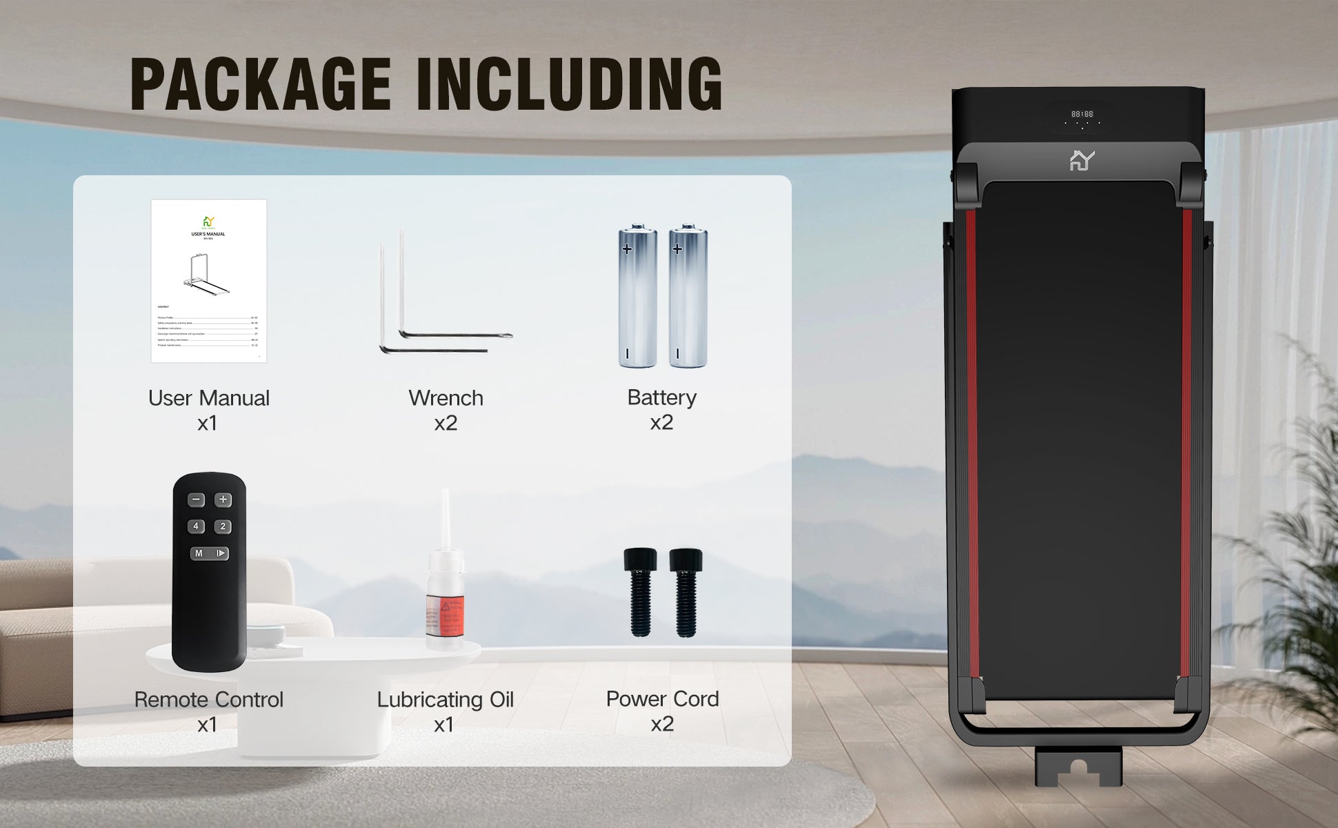 EASY TO MOVE & SPACE SAVER DESIGN】The uneder desk treadmill arrives was assembled already,and can be used directly after unboxing. There is transport wheels so that it is easy to be moved and placed under sofa,corner or bed to save your home space.