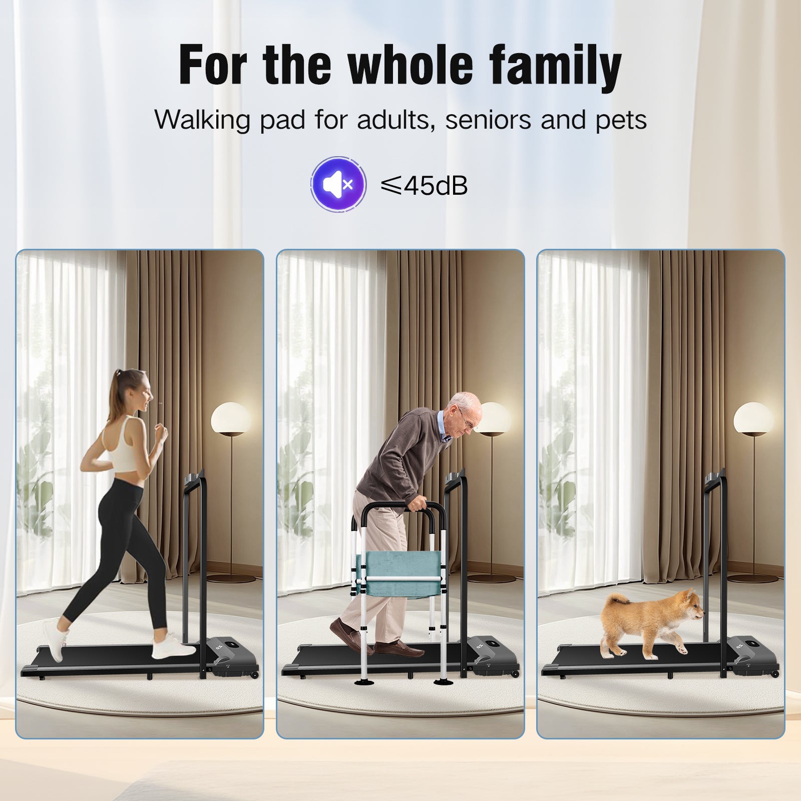 3 IN 1 WALKING PAD IDEAL CHOICE】Our walking treadmill offers a speed range from 0.6 to 5mph. 0.6-1.5mph working mode,0.6-2.5mph walking mode,2.5-5mph running mode, catering to your fitness needs. This under desk treadmill is suitable for personal use and family enjoyment,including elderly users.